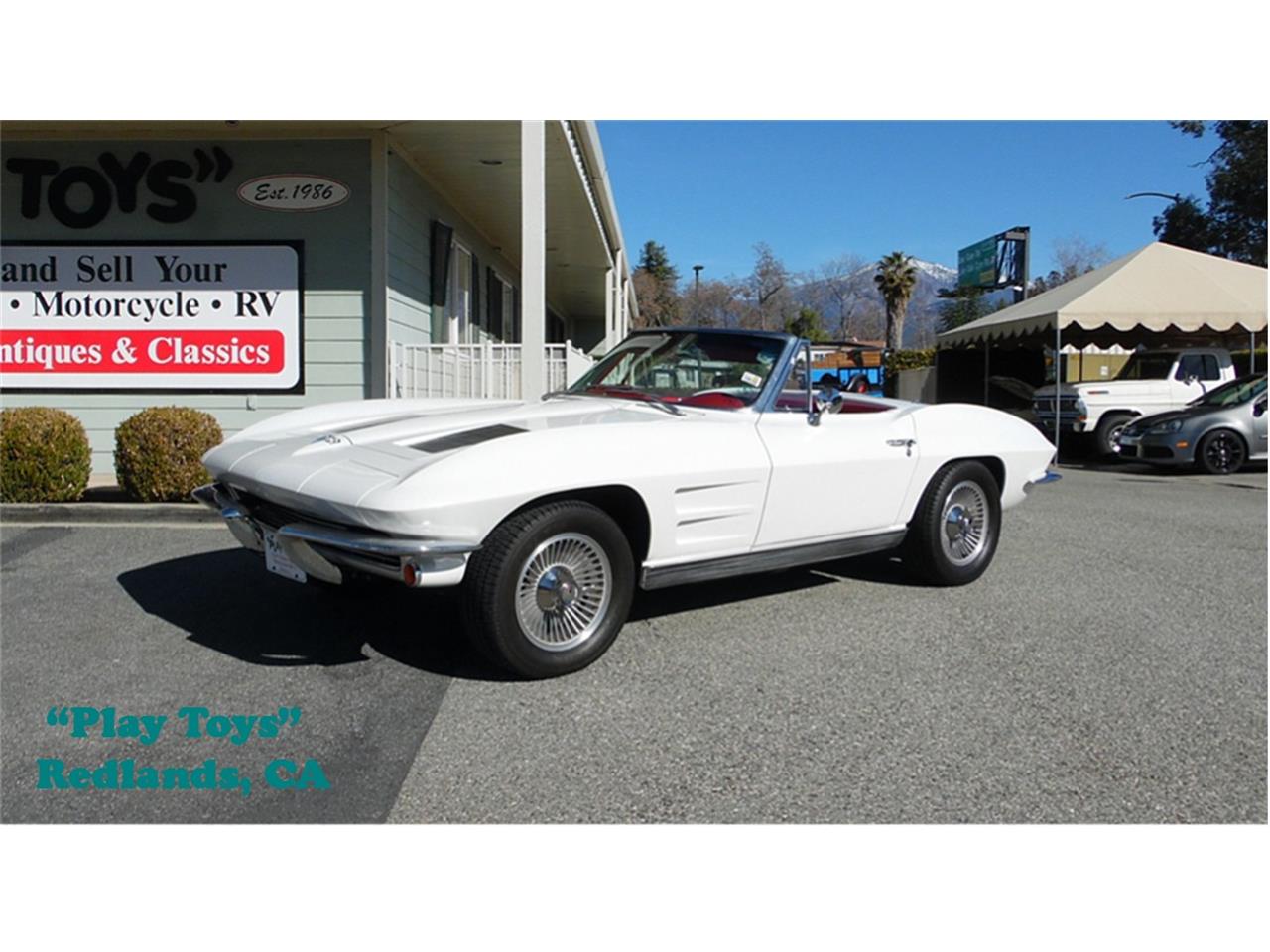 This gorgeous 1963 Chevrolet Corvette Stingray Convertible has had a Frame On Restoration and comes equipped with a 327 V8 (period correct), M-21 4 Speed Manual Transmission, Edelbrock Carburetor, Dual Master Cylinder, 4 Wheel Disc Brakes, Heater Only, Retro-Style AM/FM Radio with Soundbar, Bluetooth, Red Vinyl Bucket Seats with Lapbelts, Dual Exhaust, 15" Knock-Off Western Wheels, Newer P235/60R15 Tires, Manual Convertible Top and a Custom Fit Car Cover.
