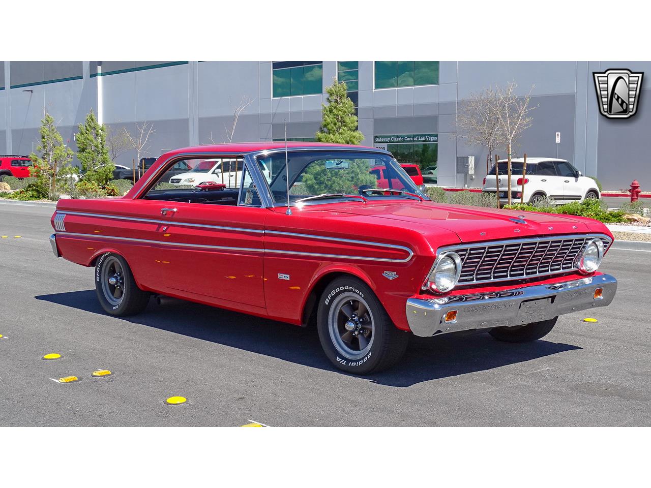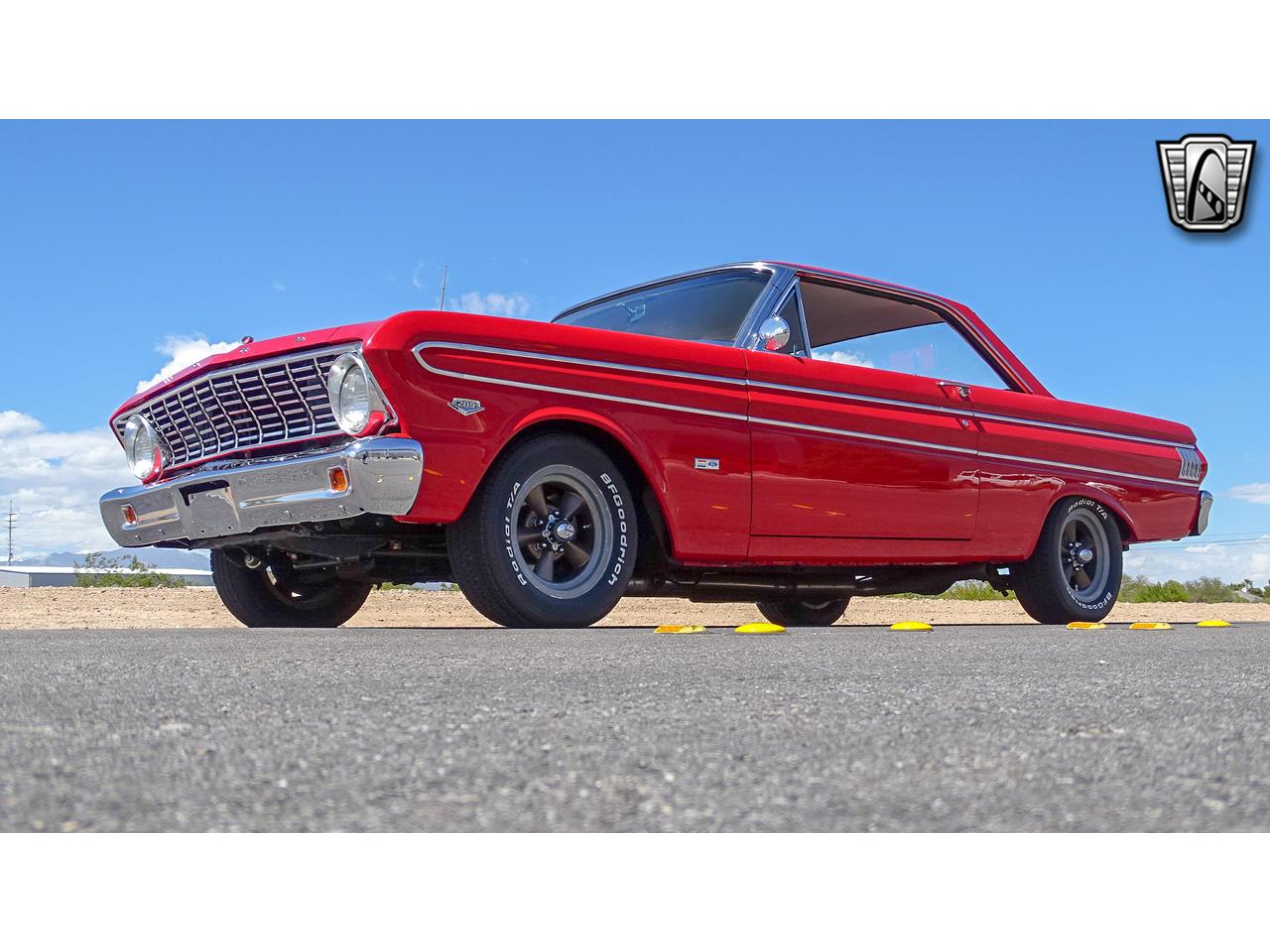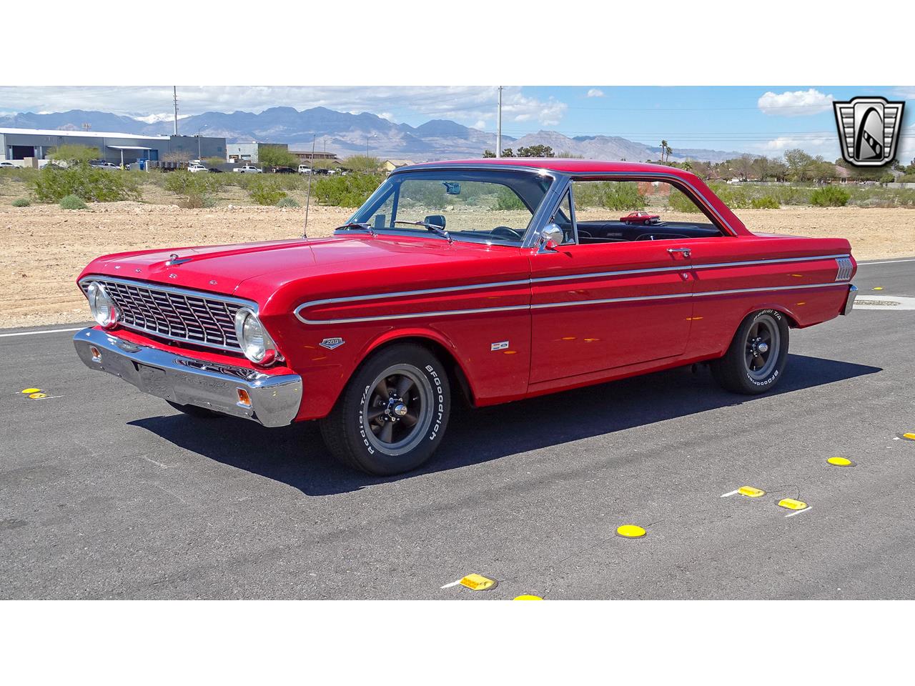 1964 Ford Falcon Futura for sale. This beauty is covered in "Pittsburg" Rangoon Red paint and has an abundant amount of chrome throughout. The black vinyl interior compliments the red color well and features the safety of 4-point seatbelts. Cobra 289 engine, Warner T-10 4 speed manual transmission that shifts smoothly and firmly. The entire powerplant is complemented by an MSD Ignition system. The Posi Traction grips nicely being paired with Radials grabbing the pavement. Braking is smooth and steady, and the front-end alignment seems spot on and tracks great.