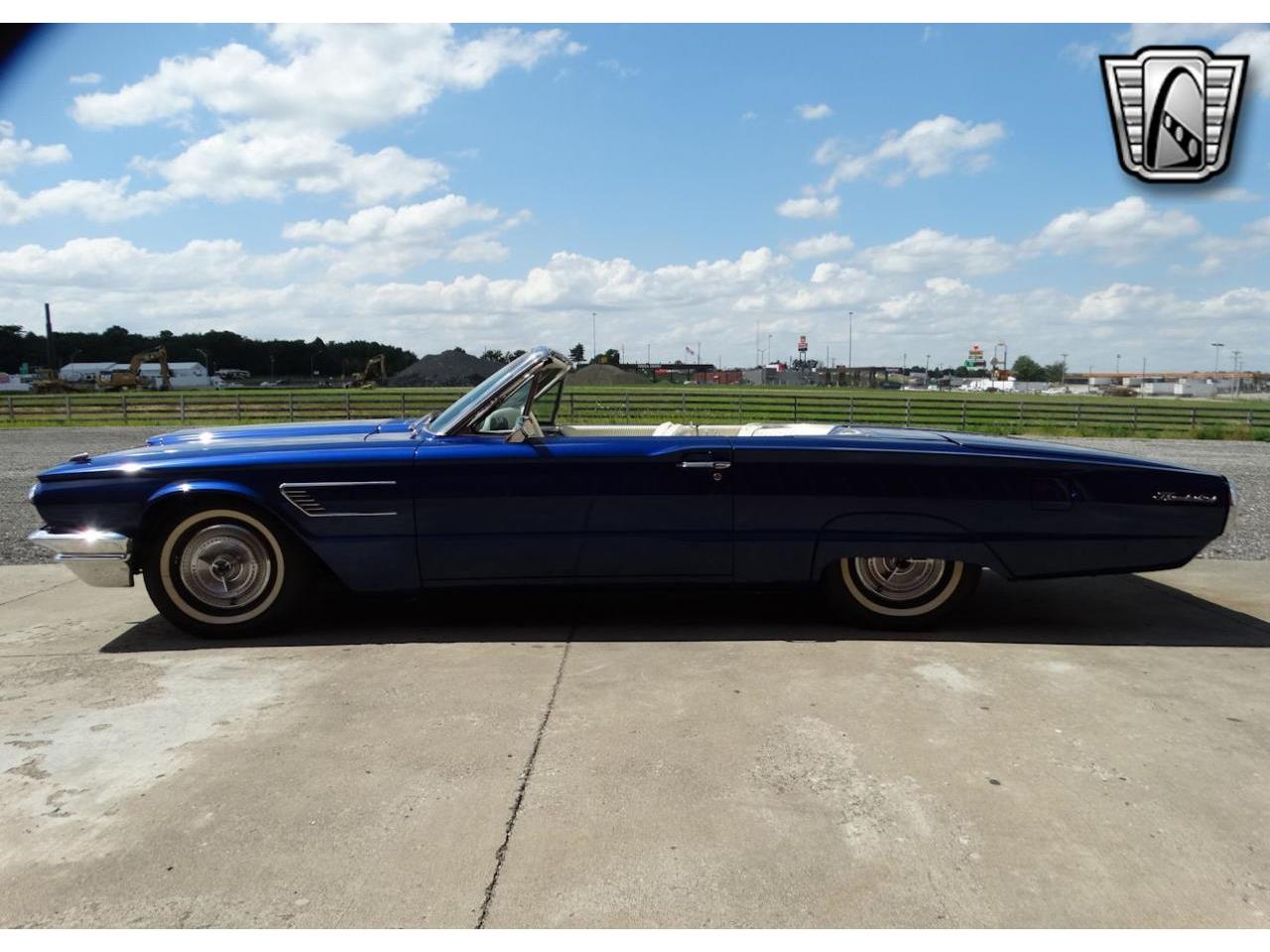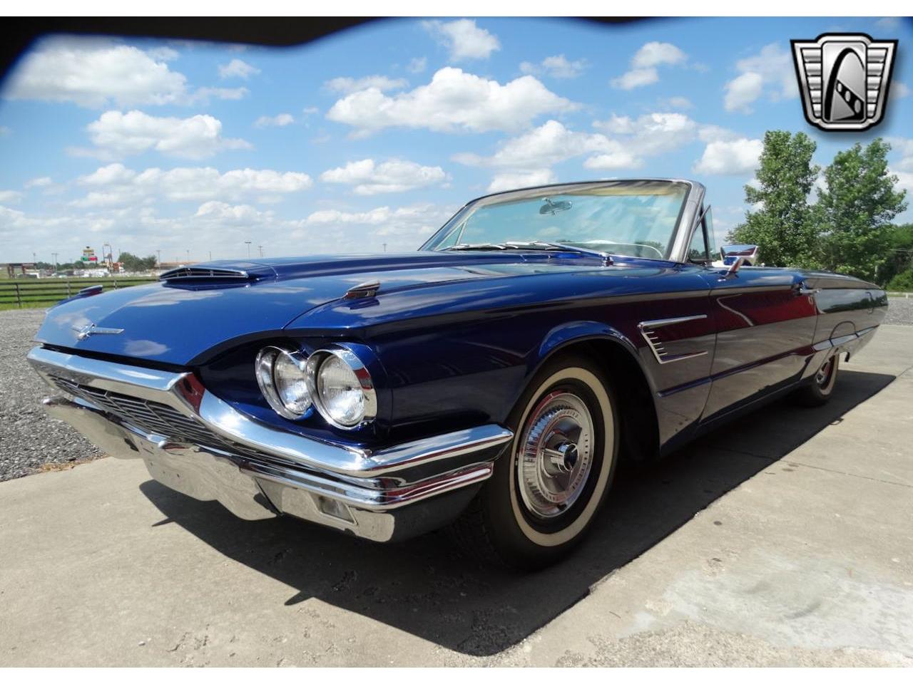 Deep blue 1965 Ford Thunderbird convertible for sale. The blue paint on the car looks great with the base coat clear coat giving it a whole new depth that could not be achieved back then. The white top just enhances that blue even more. The hubcaps are a welcomed addition and give it a classic feel. Under the hood is one of Ford's go to engines an FE big block 390 that sounds amazing. The transmission shifts nicely giving the car a very cruiser feel. Unlatch the 2 hooks and hit the button as the white top comes down giving the car a totally different look. The white leather interior is easily showed off now and is sure to grab attention no matter where you go. Great condition.