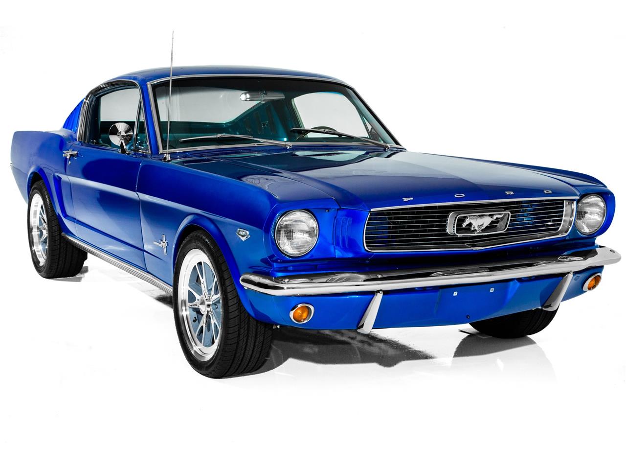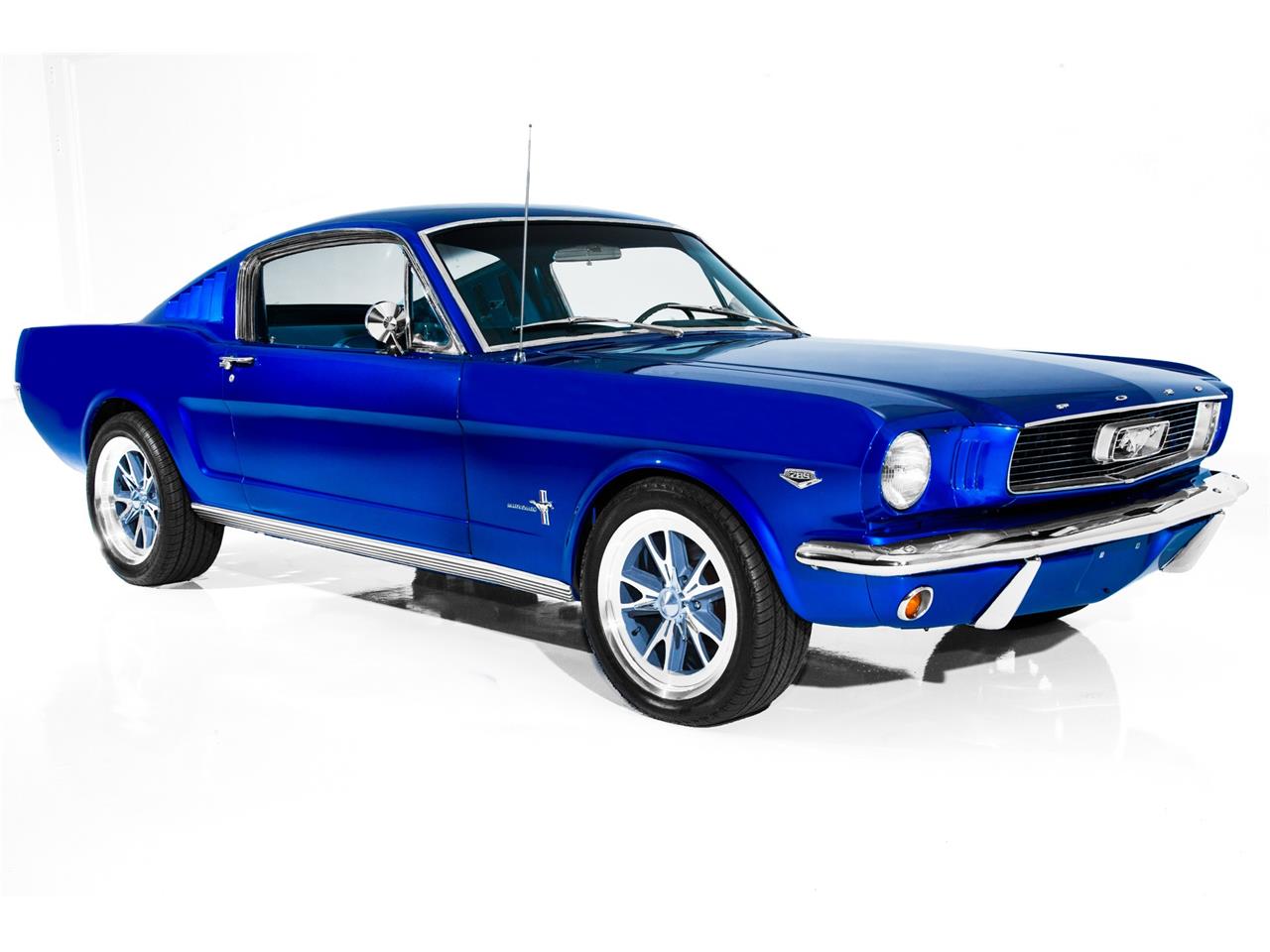 Stunning Electric Blue 1966 Ford. Mustang fastback that has been rotisserie restored and is powered by a performance built 289 c.
