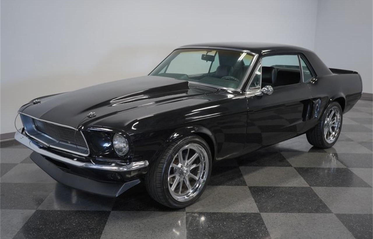 The speedy appearance, full blackout package, five speed stick, four wheel disc brakes, and enhanced V8 power all make this 1967 Ford Mustang a true dark horse.