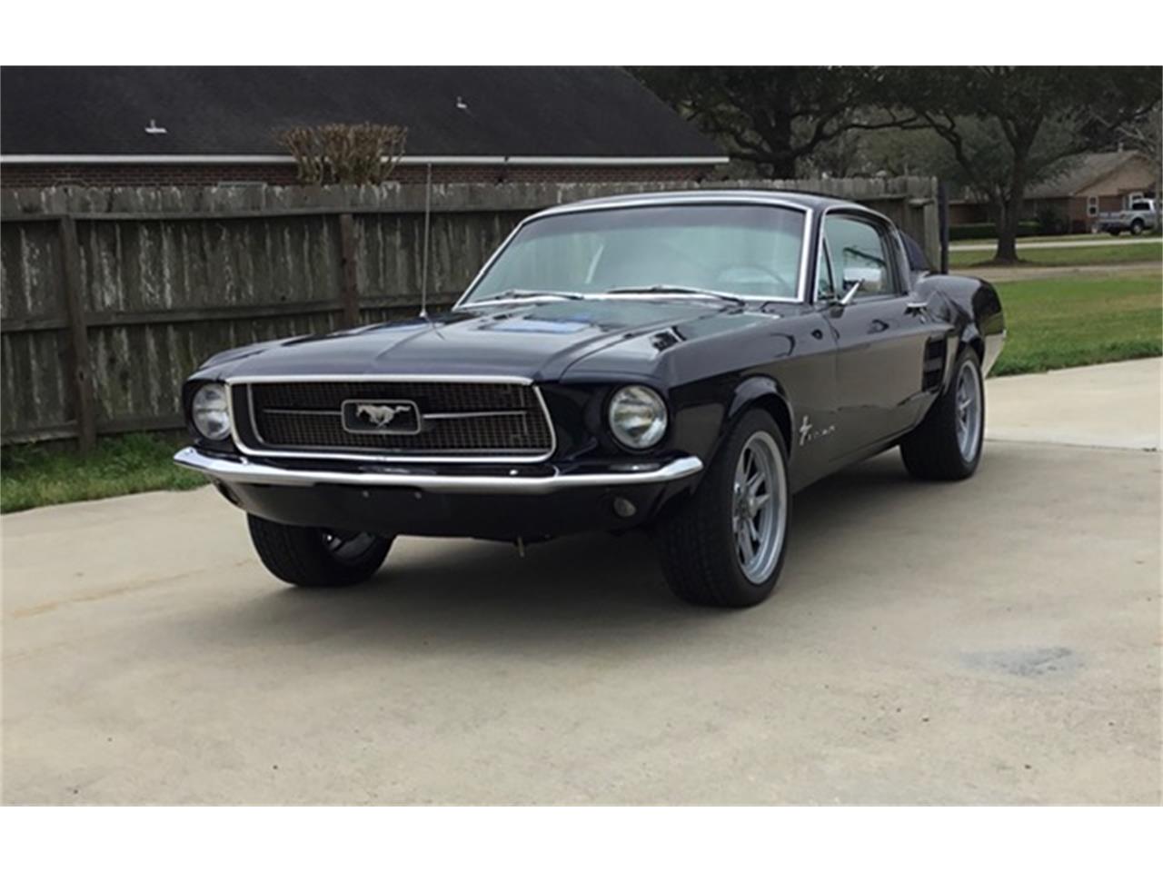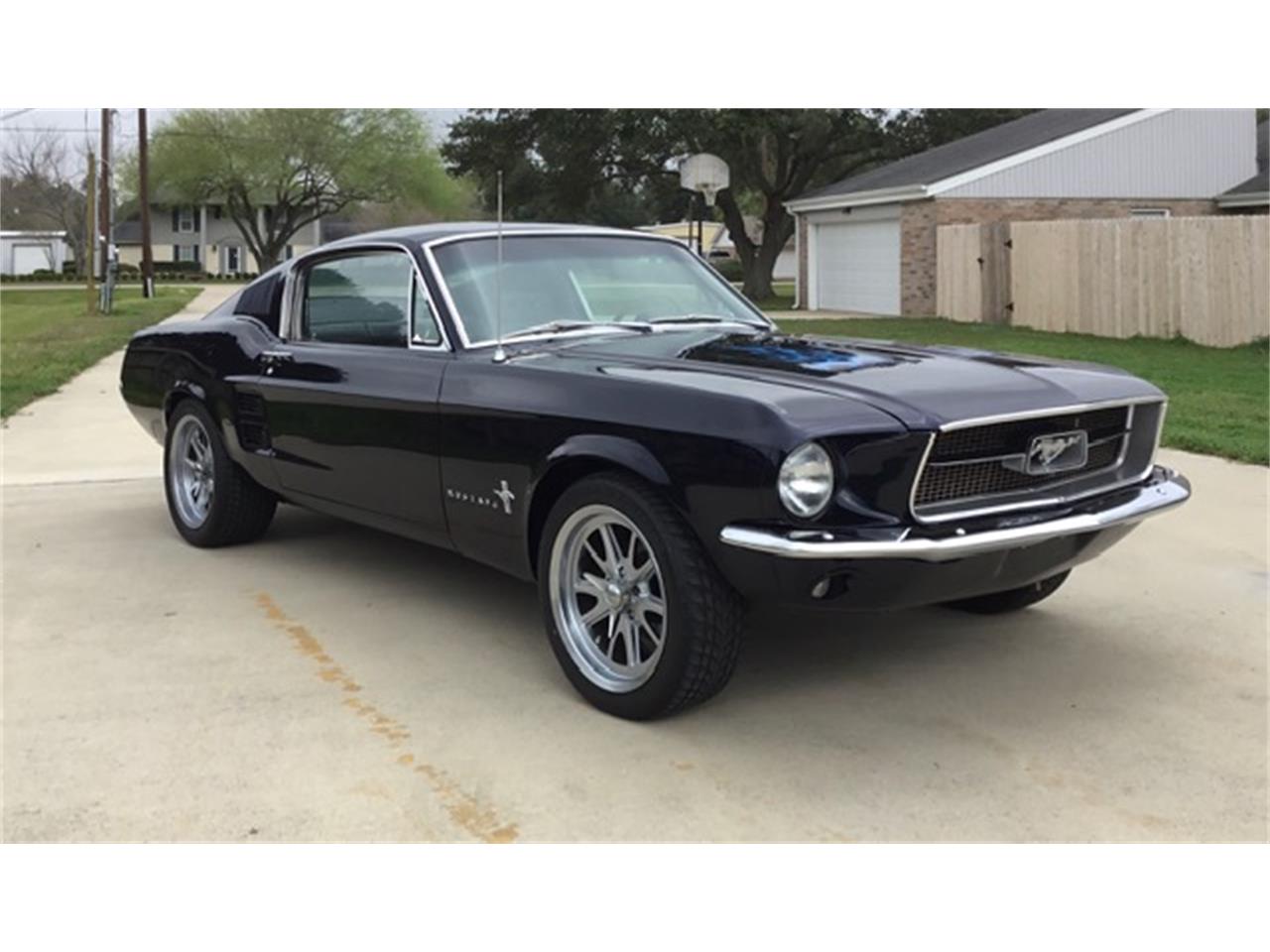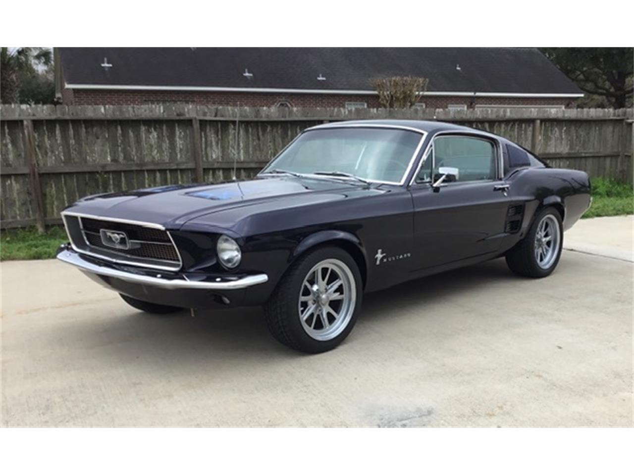 1967 Ford Mustang Fastback 289 V8, automatic trans. The wheels are American Racing Eleanor’s. Equipped with Air Conditioning, Front Power Disc Brakes, Power Steering and High End sound System. The paint is a slightly modified Ford dark blue color.