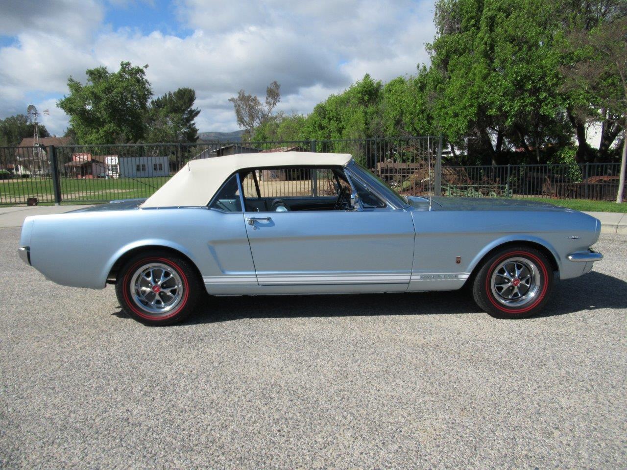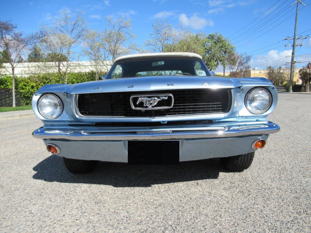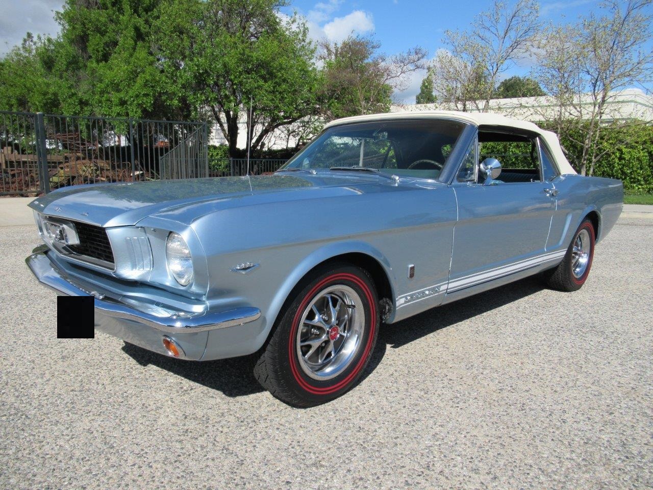A nice 1966 Mustang convertible. It is equipped with a 289 with GT heads, 4 barrel carburetor, 4 speed manual transmission, front disc brakes, and power steering.