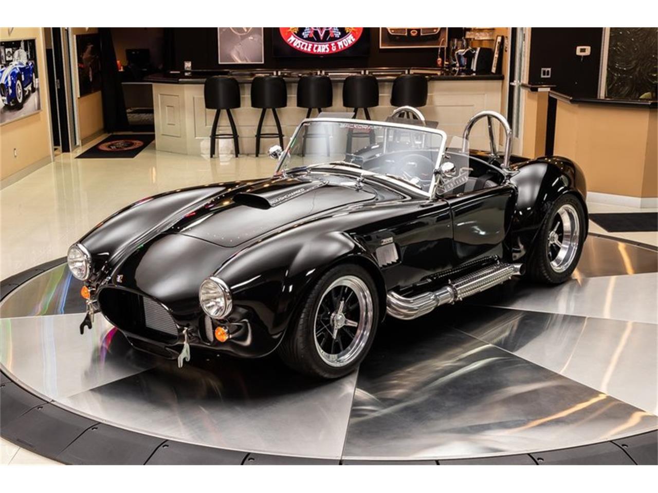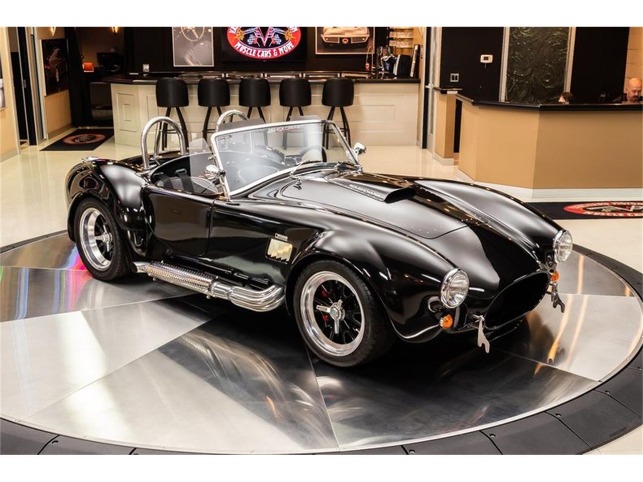 Check out this stunning Backdraft Racing 1965 Shelby Cobra! This roadster has only 457 Miles and it's practically new all around! This Cobra is sporting a glossy Black Paint finish, Painted Gunmetal Metallic Stripes, Black Leather and Alcantara Interior, Knock Off Style Wheels, Ceramic Coated Side Pipes, Polished Roll Bars, Hood Scoop, Fender Extractors, along with Roush Badging as well! Under the hood of this roaster sits a Roush Supercharged 4.
