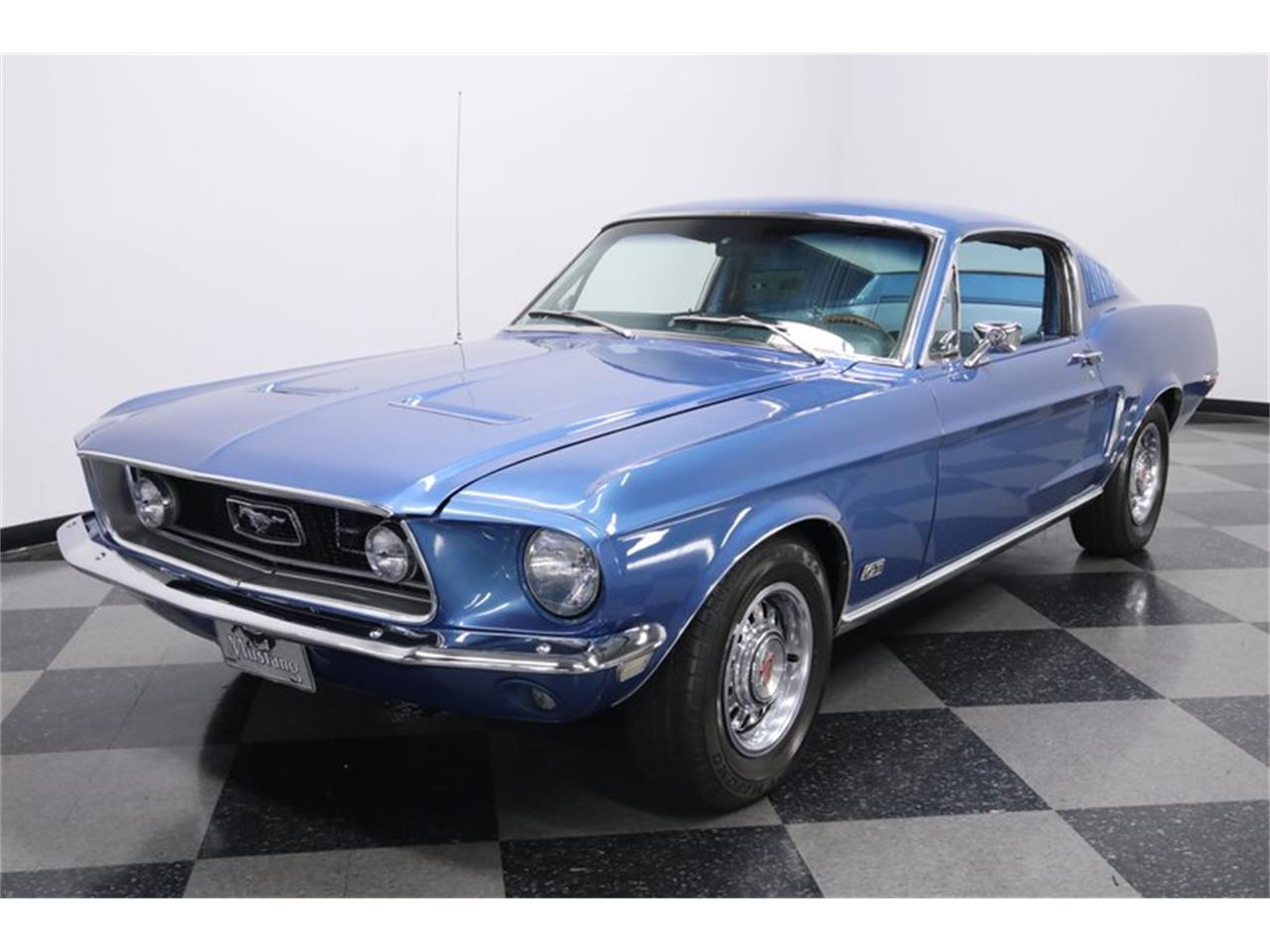 1968 Ford Mustang GT Fastback is a restored coupe that gives you some fantastic upgrades (like the A/C interior and five-speed) while retaining the best original pieces (like the correct S-code V8). This one was born with an ultra-desirable S-code 390 cubic-inch motor, and so it's great have that mighty V8 still under the hood. In fact, it's a date-correct block and topped with a correct Autolite four-barrel carburetor. The motor fires up eagerly, and it makes a terrific sound. Upgraded with long tube headers that feed an X-pipe Magnaflow dual exhaust. And you control this power and rumbling soundtrack better than the factory car ever could thanks to the upgrade to a Borg Warner five-speed manual transmission. Plus, with disc brakes in the front and traction bars in the rear, this is a well-done total package. This has the right classic features you want, like two low-back buckets up front and the GT's fold-down rear seat. Plus, there are some great upgrades for everyone, like the air conditioning blowing cold with modern R134a. But the best treats are reserved just for the driver. The wood-rimmed steering wheel feels grippy in your hands (power steering), and beyond that is a full set of upgraded Classic Instruments gauges with large speedo and tach (the original gauge cluster also comes with the sale.). There's less than 4,400 miles on this one since its restoration so not only does the paint look fantastic, but so does all that shining brightwork like the bumpers, rockers, and taillight bezels. This has the terrific GT look done correctly with the fog lights in the grille, full GT badging (including the gas cap,) premium GT wheel covers.