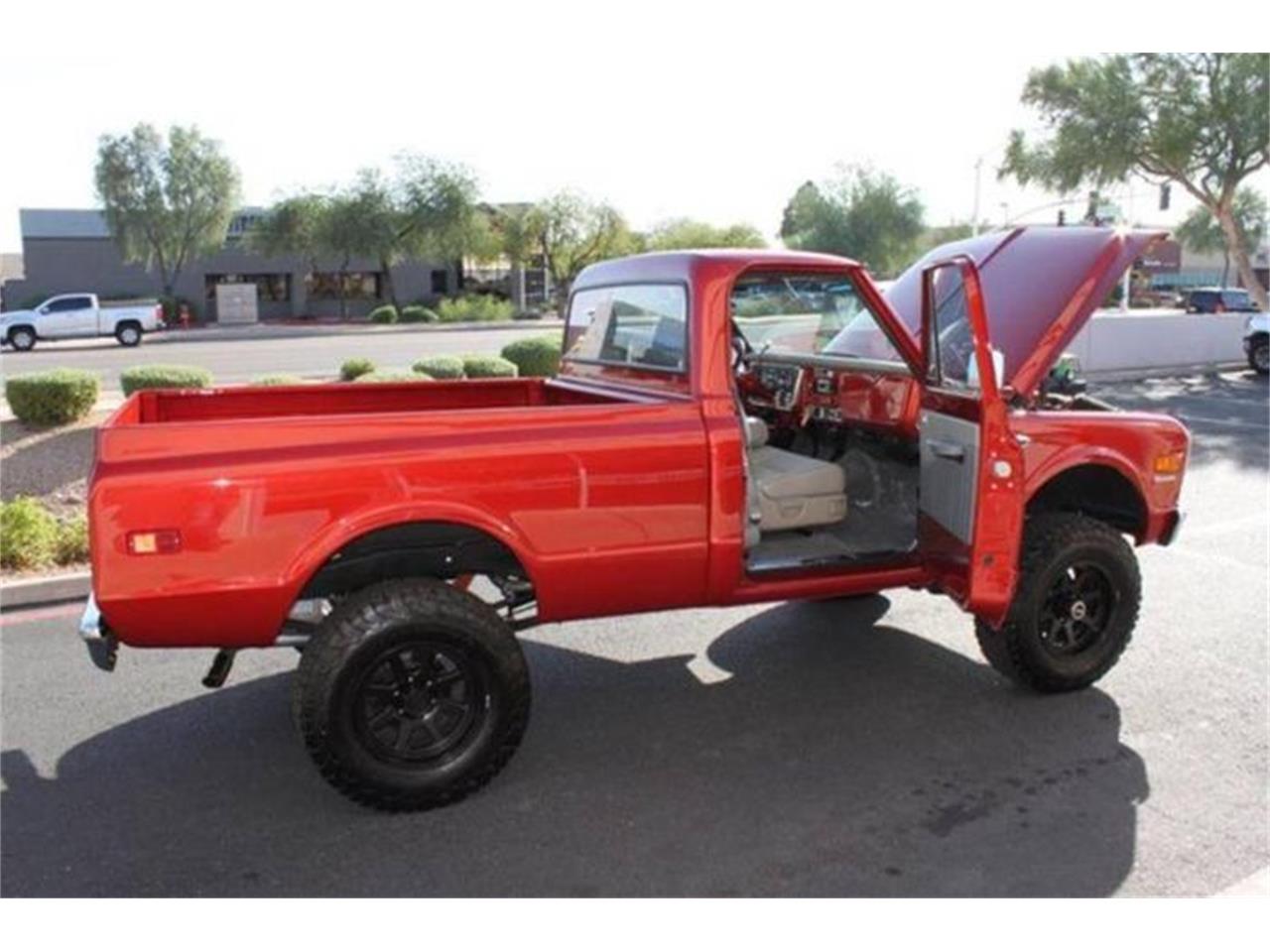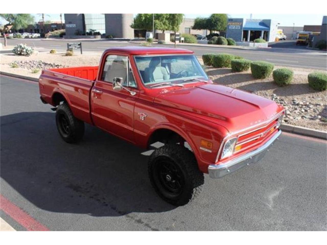 This spectacular Chevrolet K10 short bed 4x4 is finished in BMW Sakhir Orange metallic over tan leather.