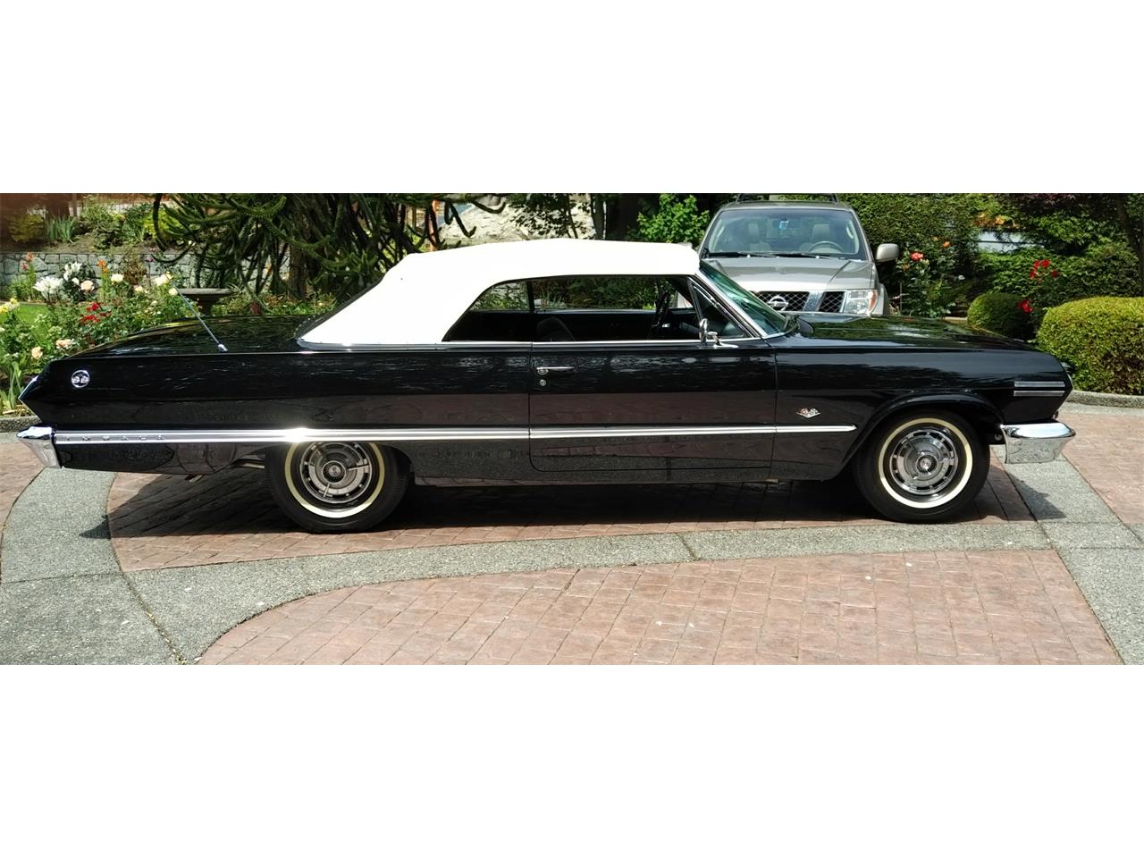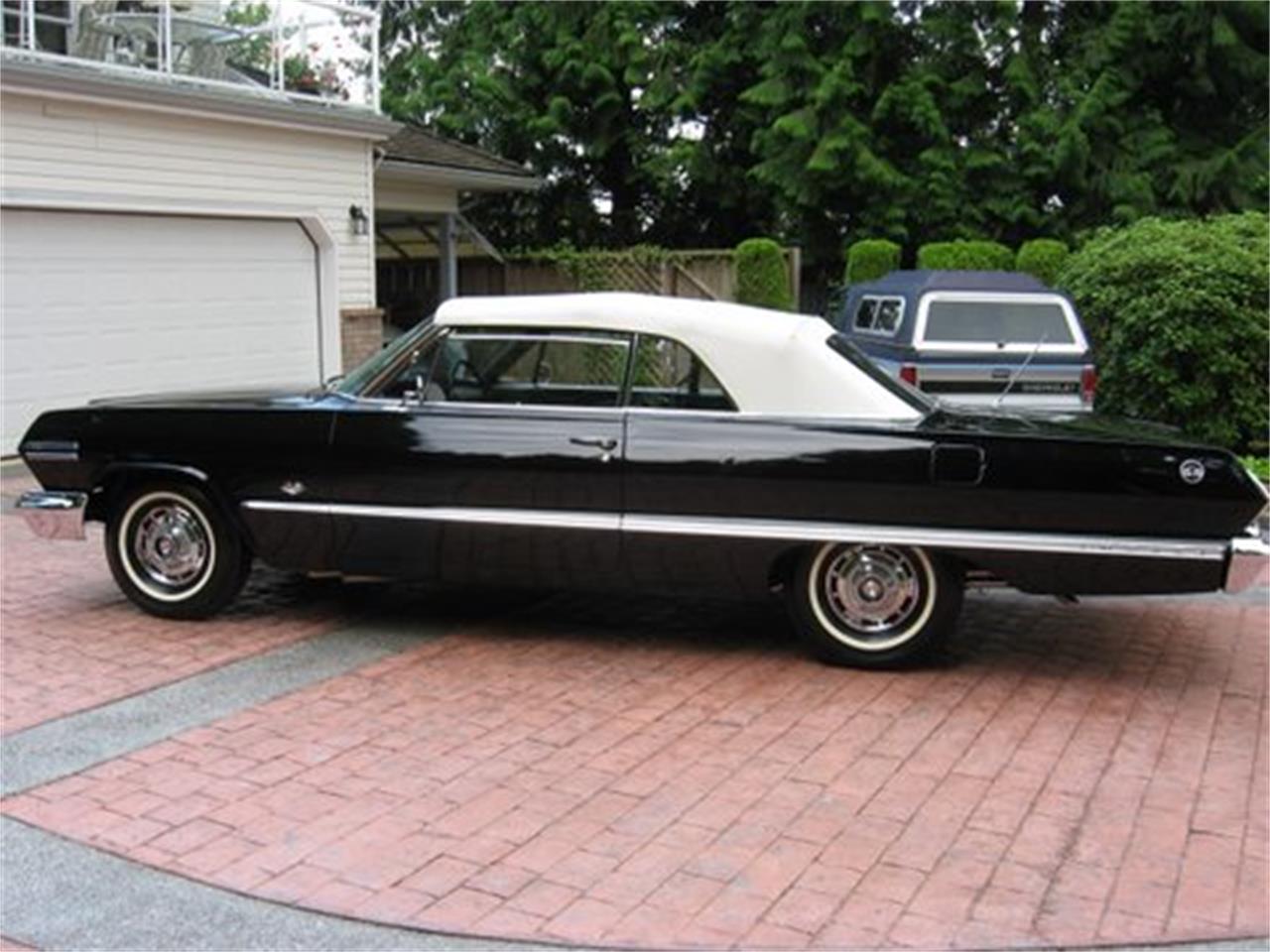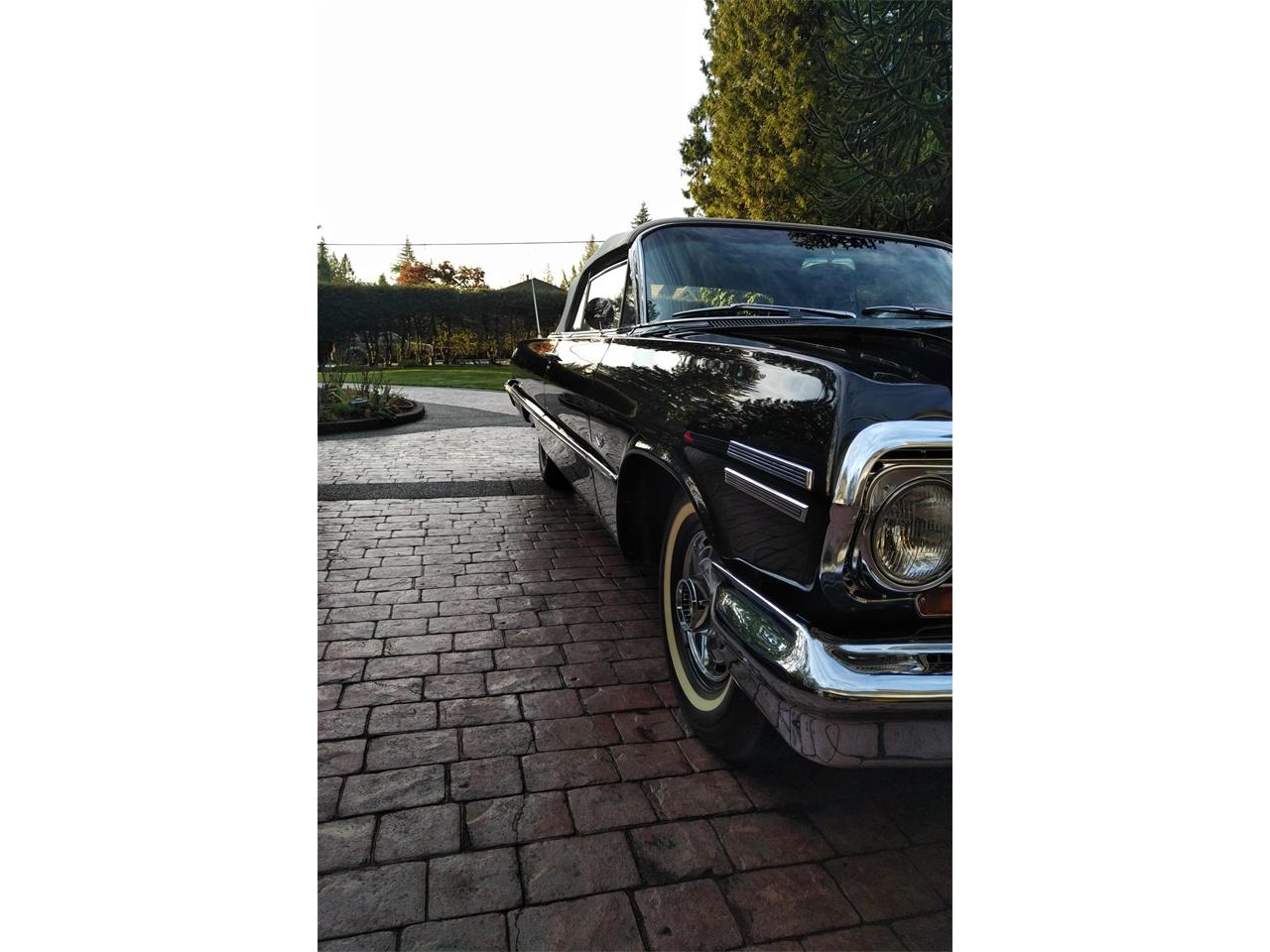 Numbers matching 1963 Chevrolet Impala Super Sport convertible. Correct date stamped Gelcell battery, Coker Classic tires, T3 headlights, stainless steel exhaust and resonators. Tuxedo Black paint, black interior, SS trim and a white convertible top as per the cowl tag. The car is equipped with a 327 cuin V8 engine having 250 hp and a 2 speed powerglide transmission. This car remains in exceptional Number 1 condition with everything functional.