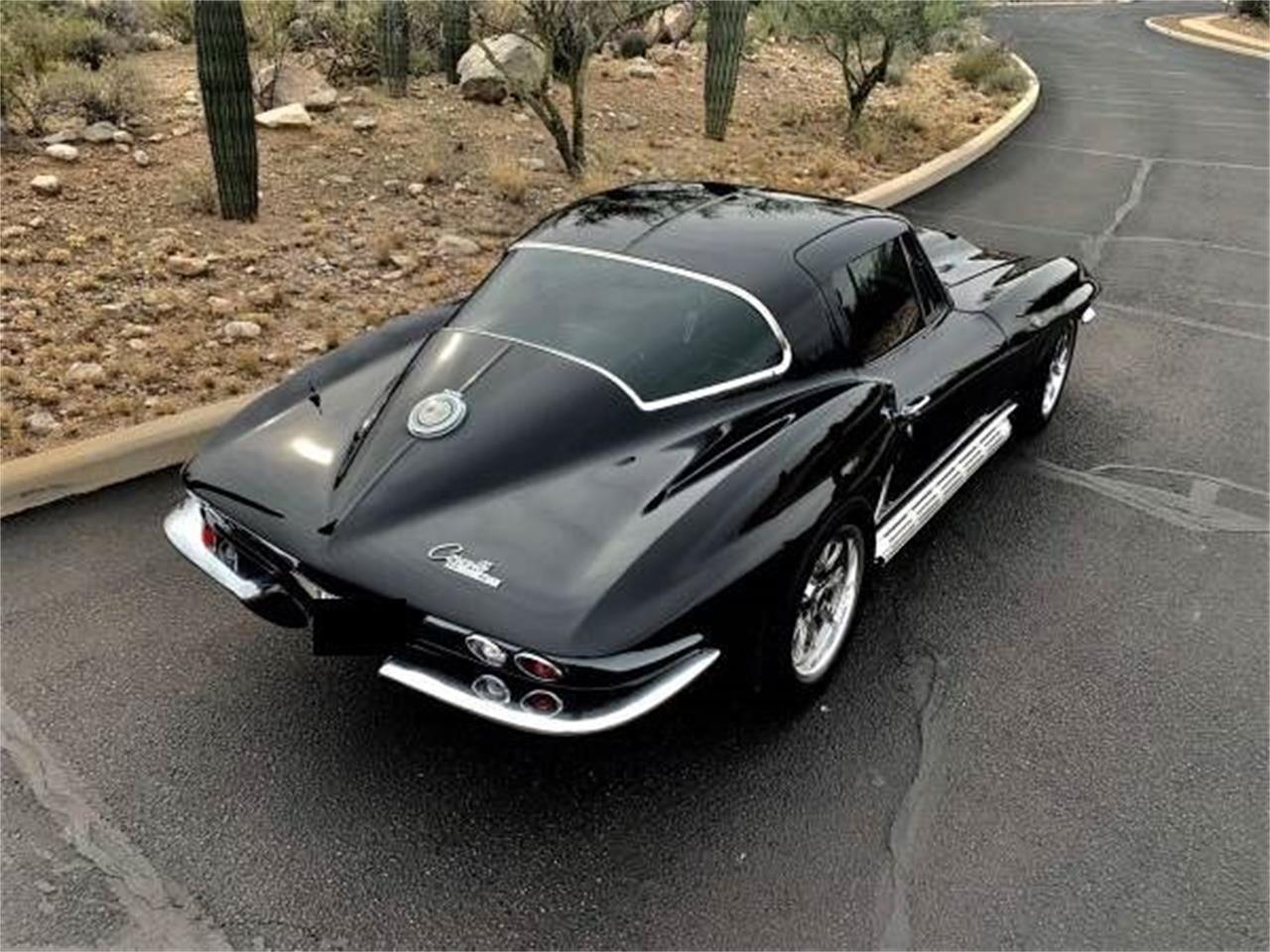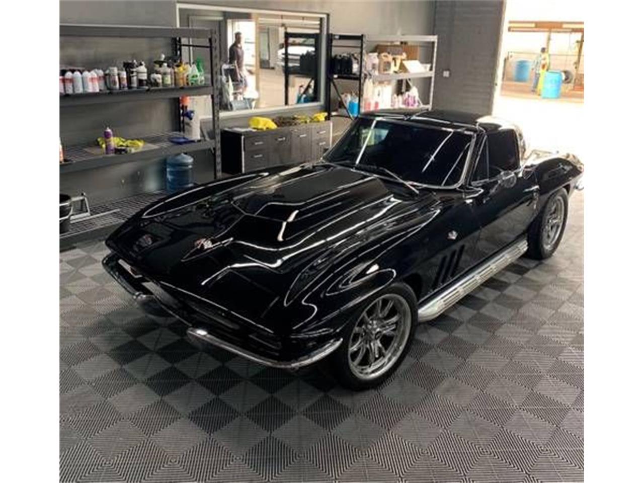 This 1964 Corvette coupe pro-touring restomod LS has a supercharger, new A-Arms, front disc brakes, power steering, Vintage Air heat and air conditioning, adjustable rear suspension, Serengeti leather interior, sound insulation, new wheels, new tires, show quality paint, blower from a 2002 Corvette, LS engine, Wilwood brake reservoir, and new acrylic window tint.