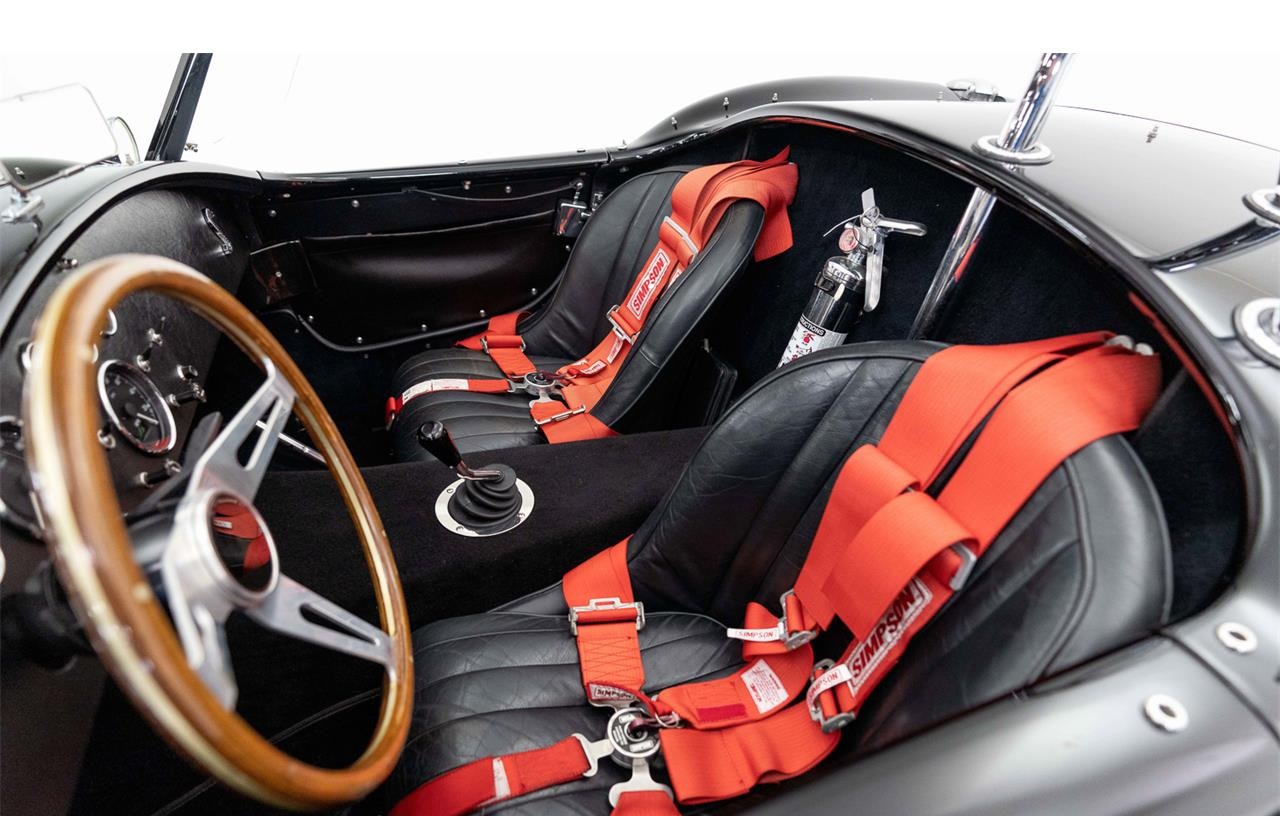 This 1965 Superformance Cobra MKIII is finished in black on black . The interior is clean, simple and classy.