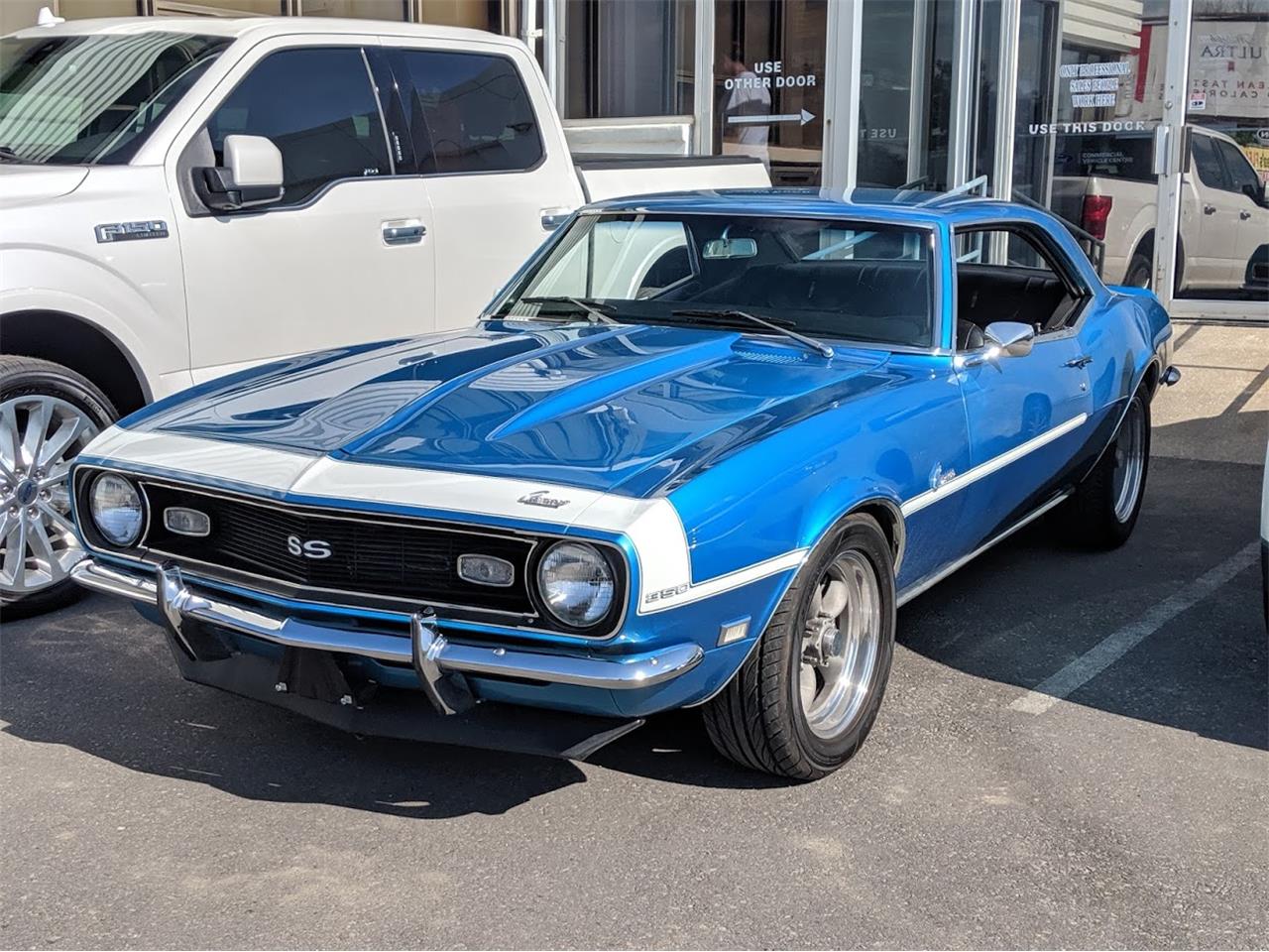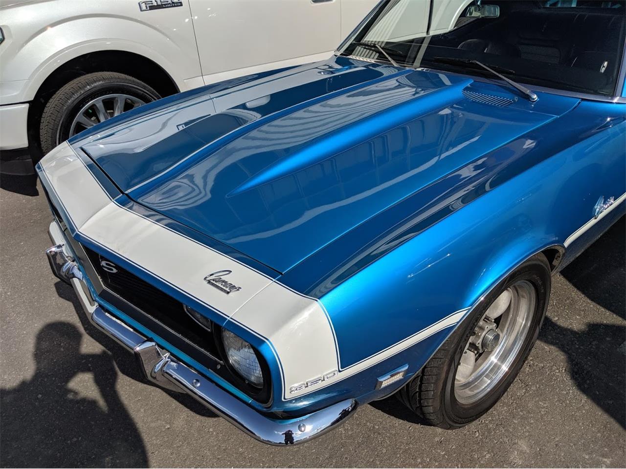 Beautiful 1968 Chevrolet Camaro. Starting with a very lively 383 Stroker engine mated to a modern overdrive 4L6OE transmission. This impressive engine package has electronic ignition and a large capacity aluminum radiator to handle the cooling. Headers fitted to custom fitted large diameter tube system with cross over pipe and performance mufflers tucked into the stock channels. The numerous chassis improvements start with Power assisted 4 wheel disc brakes, Torque Thrust wheels and Power Steering with large diameter sway bars front and back for greatly improved handling. 12 Bolt differential and coil over shock absorbers controlled by a fully adjustable four link suspension system with lateral cross member. The electronics list consists of Power Windows, Keyless Entry and Remote trunk release, modern instruments , tilt wheel and even push button start. The Audio system is fitted with Retro Sound with Bluetooth.