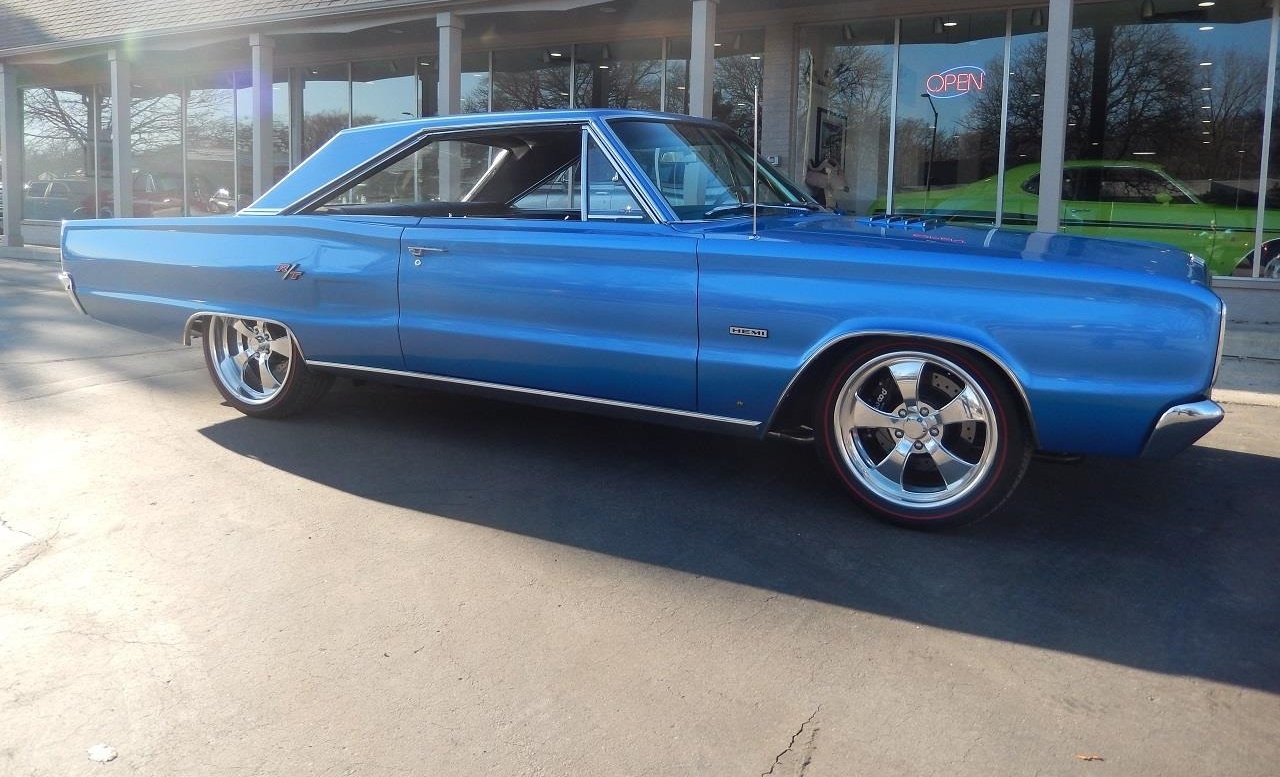 True (WS) R/T, beautiful B5 blue metallic, black vinyl interior, Indy 500 ci/600 hp engine, Tremec 5 speed manual transmission, 4 bbl, Mopar aluminum intake, aluminum heads, TTI headers, power steering, Wilwood 4 wheel disc brakes with slotted & drilled rotors, March aluminum pulley’s & brackets, aluminum radiator with dual electric fans, bucket seats with console, Pistol Grip shifter, Dakato custom dash, custom radio, 3” Flowmaster H pipe dual exhaust with chrome tips.