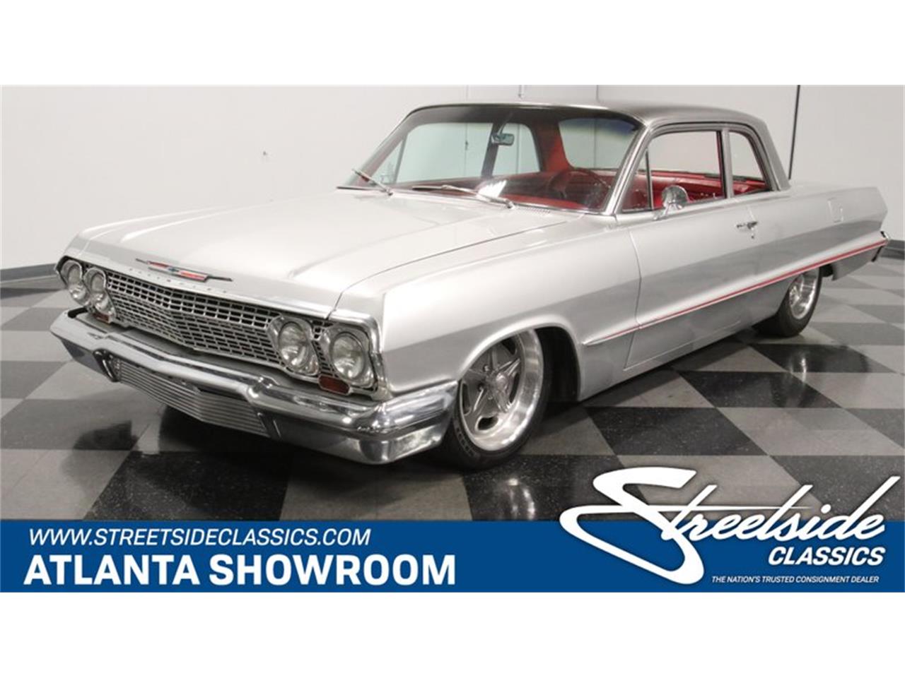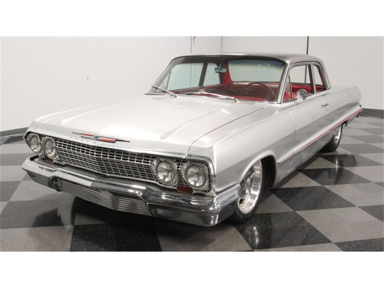 This 1963 Chevrolet Biscayne Restomod not only has a dual-quad V8, but also shimmering paint, a bold A/C interior, and serious suspension upgrades, including airbags.