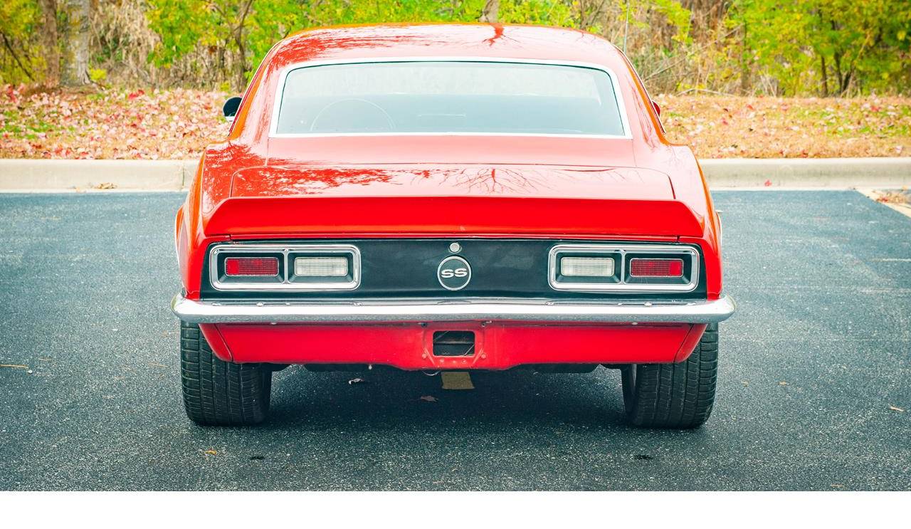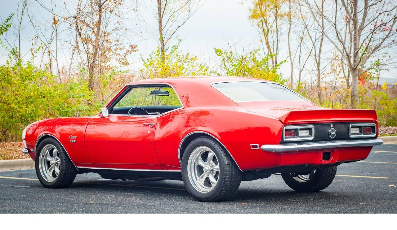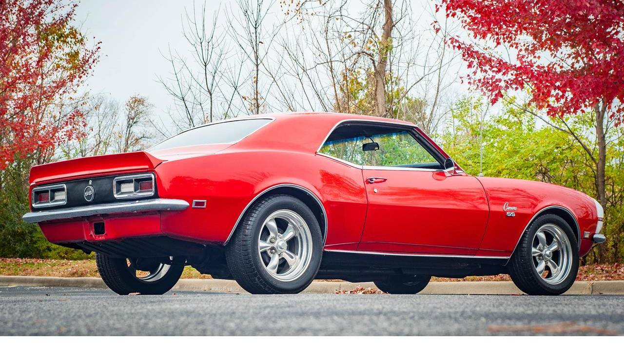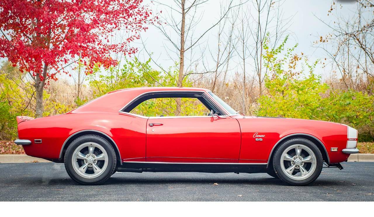 1968 Chevrolet Camaro. This Camaro is powered by a 327 small block mated to a 3spd automatic with a shift kit and it really moves. The red paint and chrome wheels really make the looks of this Camaro pop. The leather is in great shape. All in all, this is a great driver and deserves to be put to use.