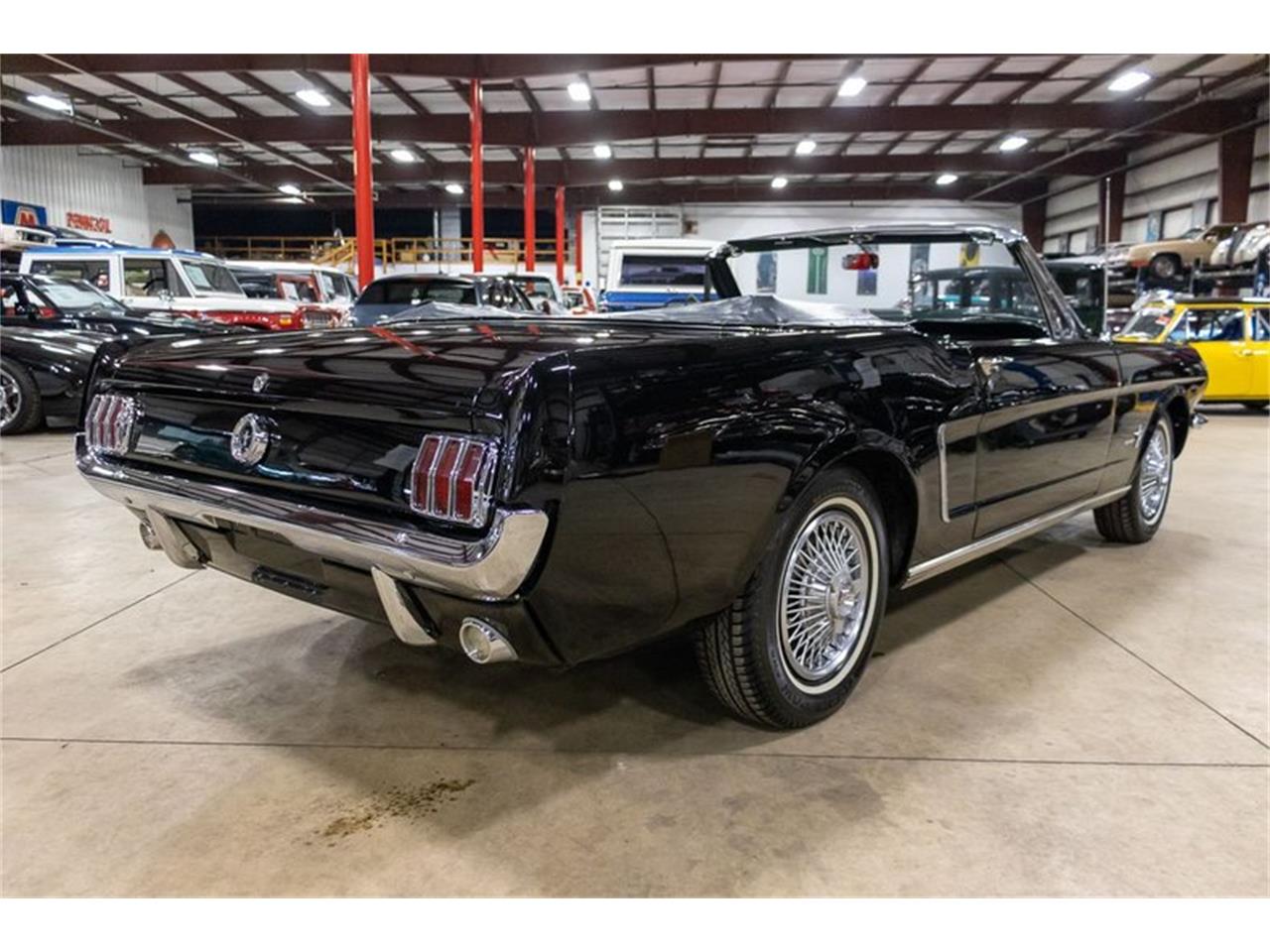 1965 Ford Mustang Convertible. This is a very high-quality example that remains in its exact configuration when built in Dearborn, MI in July of 1965. It comes dressed in Raven Black exterior paint over black interior with white convertible top. Factory options included: 200 CID inline 6-cylinder engine, automatic transmission, Air conditioning, power top, bucket seats, console with console shifter, AM Radio, wire wheel covers, full size spare, etc. The body and body panels are excellent and exhibit excellent fitment, the paint lays flat and is very deep and glossy, and the interior stands tall and is topped off by its classic 3 spoke factory steering wheel. The chrome and trim remain wonderful, the engine bay is detailed, and the underside remains super clean. Mechanically, this Mustang is spot on. It runs and performs well in all situations whether traveling on the highway or just cruising the strip on a summer night.