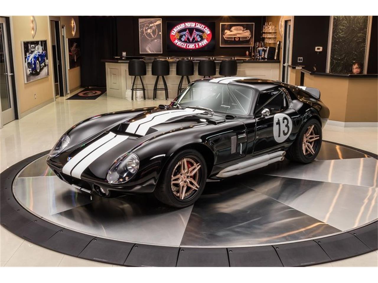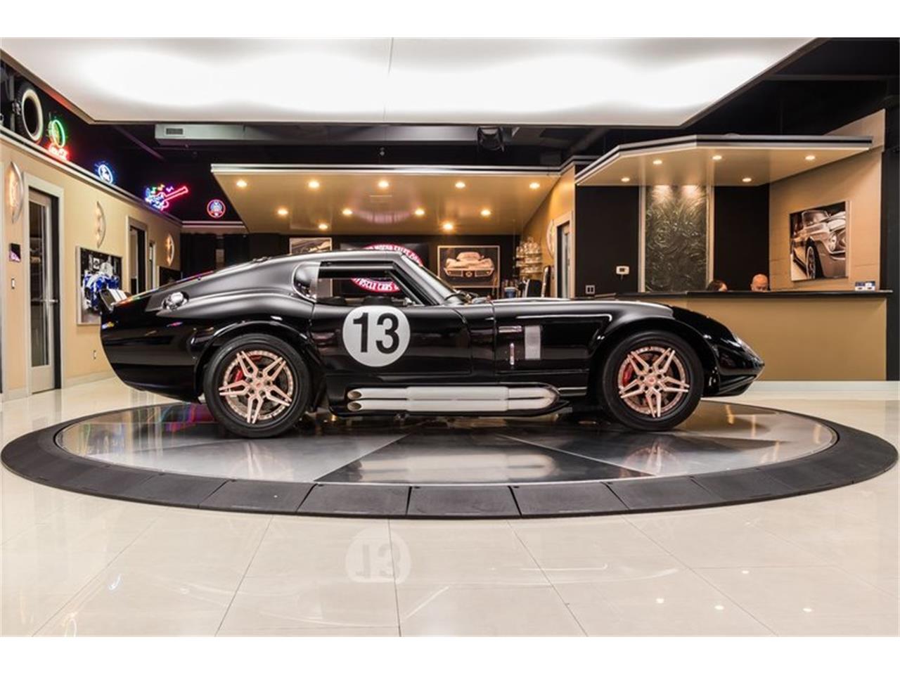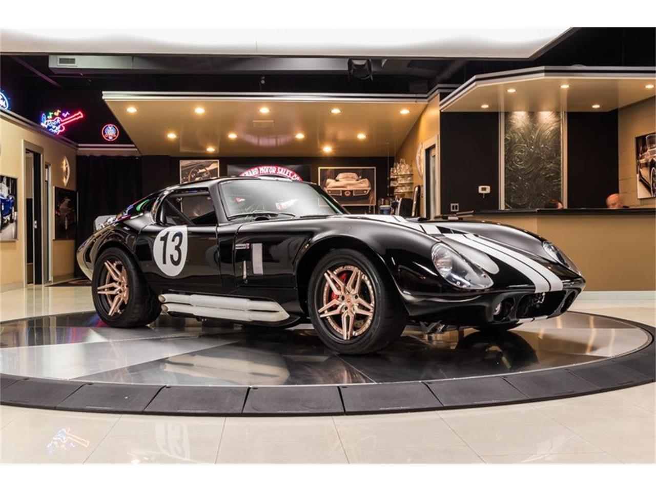 1965 Shelby Daytona Coupe Factory Five. Black Paint finish, Black Interior, Matte White Number Decals and Stripes along the body, Side Pipes, Forged 18'' Vossen 3 Piece Wheels, Fog Lights, along with Polished Components throughout that's sure to turn heads wherever you go! Under the hood sits a Ford 5.0L Coyote V8 Engine mated to a Tremek TKO600 5-Speed Manual Transmission.Custom Stainless Steel Headers, Cold Air Intake, Aluminum Radiator, Electric Cooling Fan, Koni Adjustable Coilovers, Adjustable Tubular Upper Control Arms, and Tubular Lower Control Arms! Power is sent to the massive Falken Tires out back through an Independent Ford 8.8'' Rear End with Limited Slip. This Daytona Coupe is an absolute blast to drive and you can cruise around town with ease thanks to the equipped Heat, Air Conditioning, Power Steering, and Wilwood Disc Brakes with Drilled and Slotted Rotors on all 4 corners.