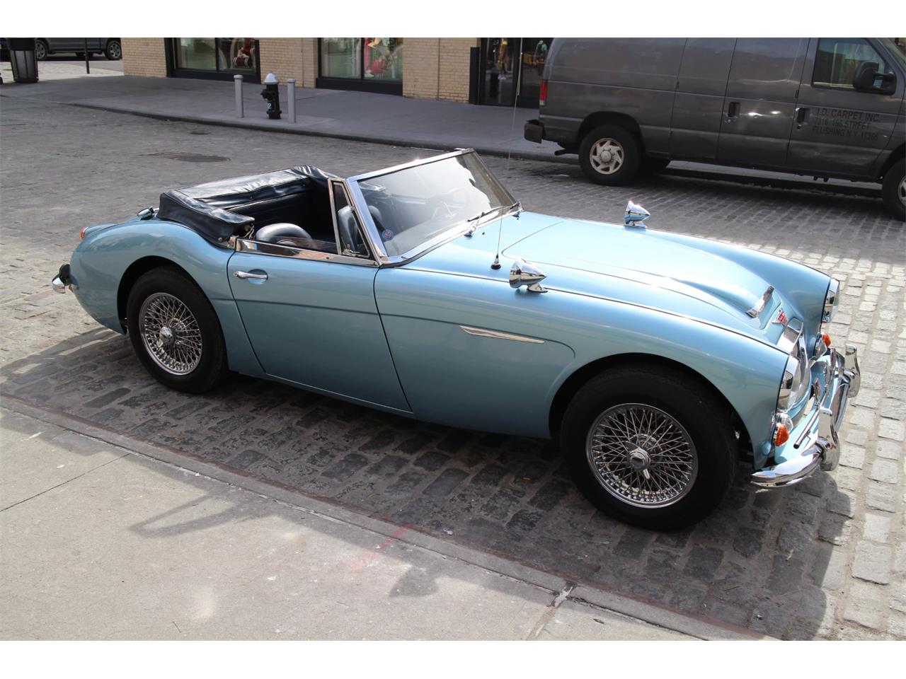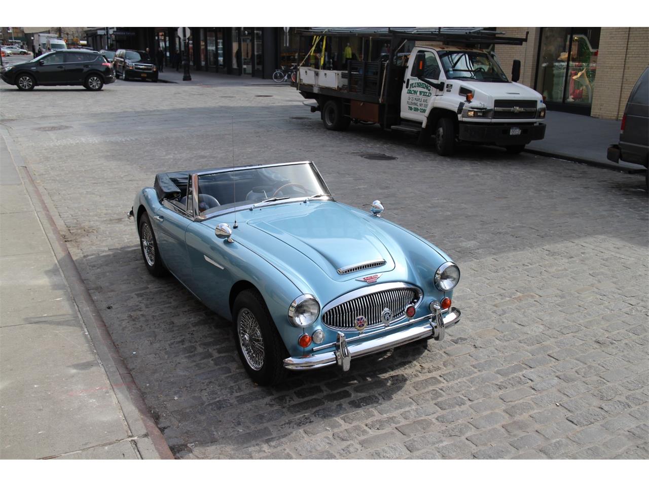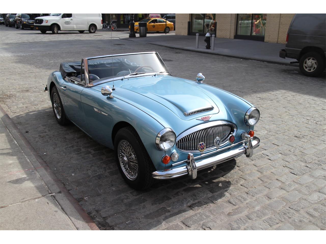 This 1967 Austin Healey in lustrous Healey Blue is in highly original condition. The interior is fully original, with all original leather and very rare original beading. This car is a matching numbers example with the British Heritage Trust certificate accompanying the sale. The engine was fully rebuilt less than 5000 miles ago. At the same time, the original matching transmission was serviced, with a full clutch replacement. The overdrive function is fully working and in good shape, with a switch mounted on the dashboard. The frame rails retain most of the original Austin paint, and are in excellent condition. All gauges are working as intended, and all the car drives like a dream. A factory correct blue top was installed and looks and functions as new. A new set of Wire wheels finishes off the original clean look on this car. It was upgraded to a negative ground system with a sympathetic modernization of the electrical system.