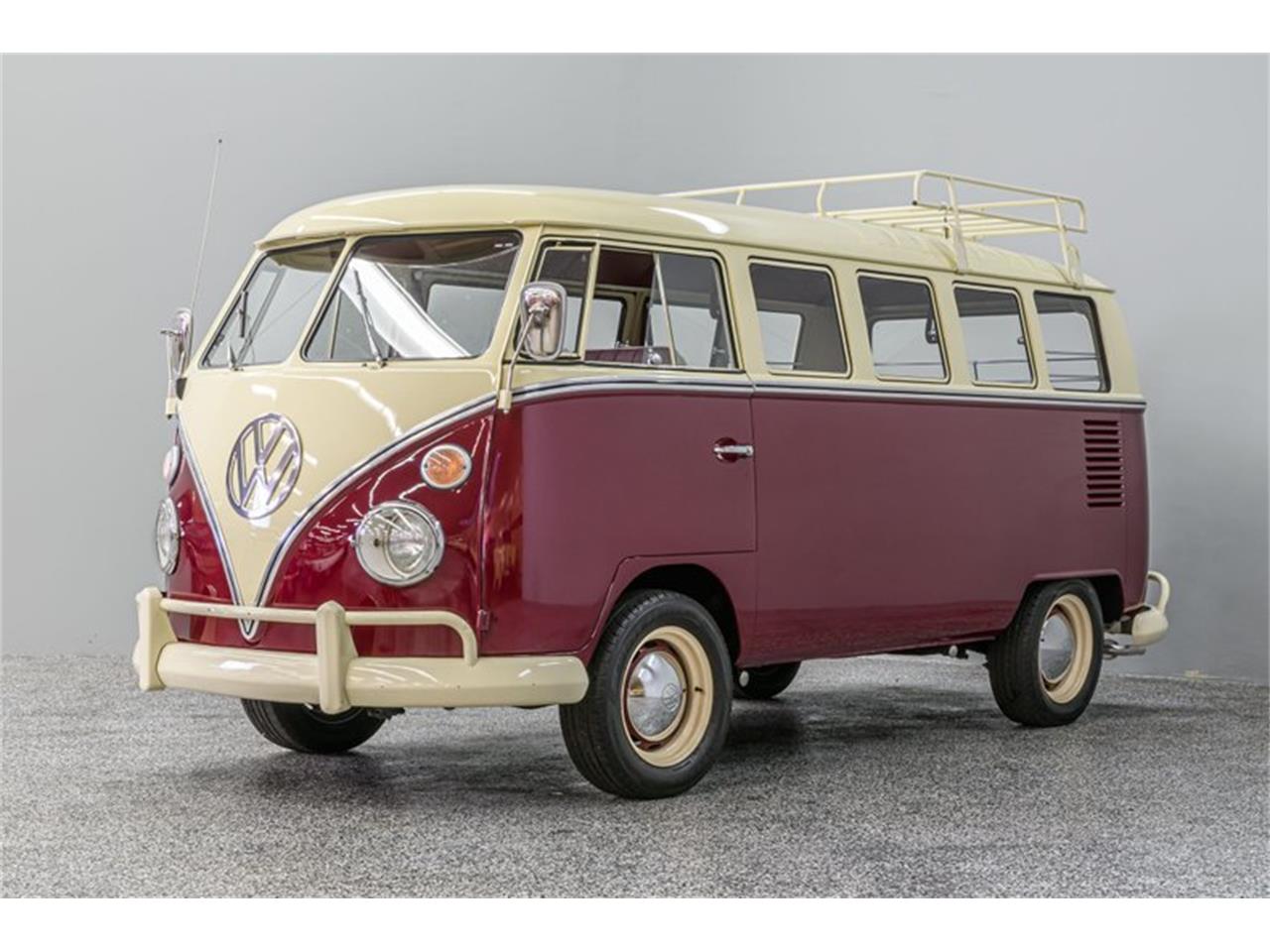 1967 Volkswagen Microbus Deluxe Wagon. The exterior was professionally finished in two-tone Titan Red and Cream. It features the iconic split front windshield, new roof rack and six pop-out side windows. All exterior/interior chrome/stainless has been restored or replaced. The interior was professionally redone to factory condition including new headliner, carpeting, door panels and upholstery. All window and door seals were replaced. Power is provided by a big-bore 1914cc air-cooled VW boxer 4-cylinder that was professionally built. It is equipped with 94mm bore cylinders, 69mm rods, Empi dual intakes, dual 40mm carburetors and custom dual exhaust. It starts and runs beautifully. The motor is backed by a factory 4-speed manual gearbox. A rock-solid chassis sports 4-wheel drum brakes (all new German components), all new suspension components including 22mm Empi sway bars/Sachs shocks, new deep-dish steel wheels w/VW center caps and radial tires.