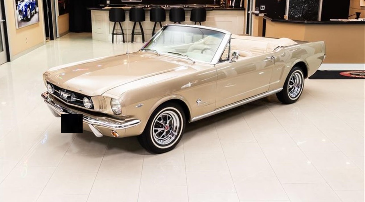 1965 Ford Mustang Convertible. Check out this gorgeous 1965 Ford Mustang Convertible. This Mustang is sporting a glossy Metallic Gold Paint finish, Manual Black Convertible Top, beautiful Tan Interior, Fog Lights, White Wall Tires, along with Polished Stainless Steel and Chrome Components all around that is sure to turn heads wherever you go. This Mustang has undergone a complete Nut and Bolt Restoration and the high attention to detail it's received shows throughout. Under the hood sits a Ford 289ci V8 Engine mated to mated to a Toploader 4 Speed Manual Transmission. Power is put to the pavement through Ford 8 inch Rear End with an Open Differential.