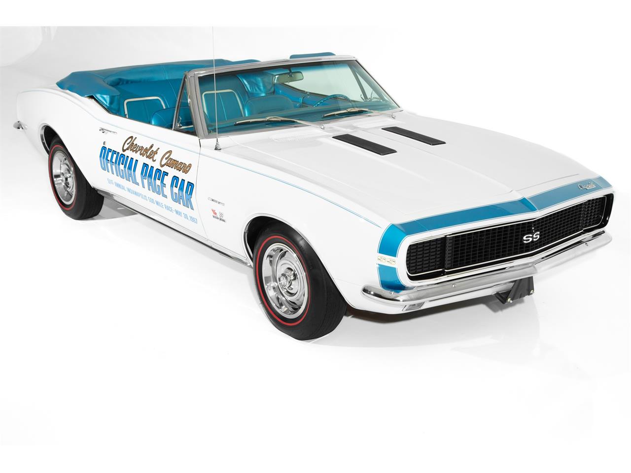 Rare 1967 Chevrolet Camaro RS SS Pace Car convertible.This American Dream Machine is one of only 100 Indy 500 Pace Car convertibles built.Beautiful white paint covers a body with excellent metal structure and exacting lines and gaps.