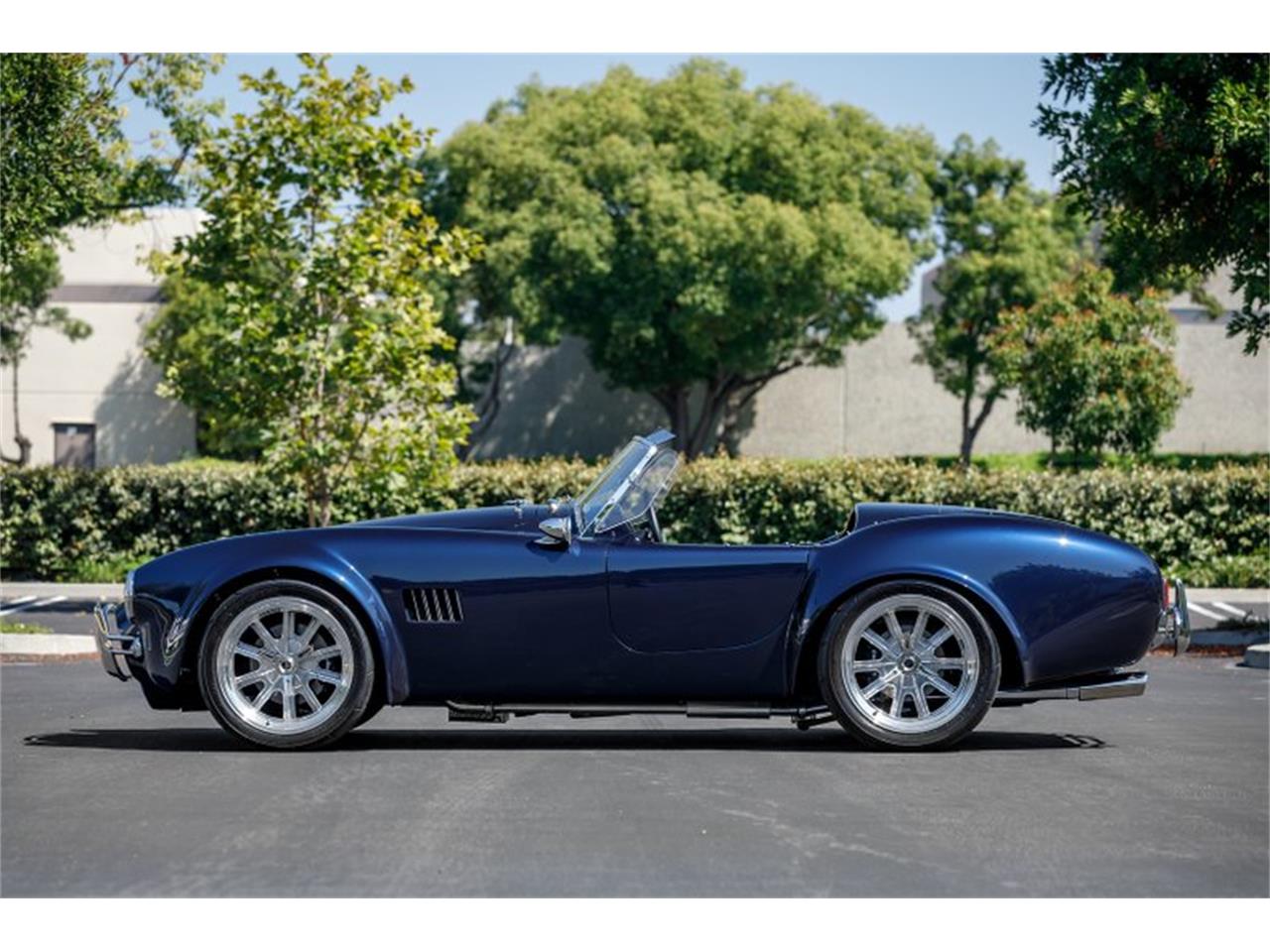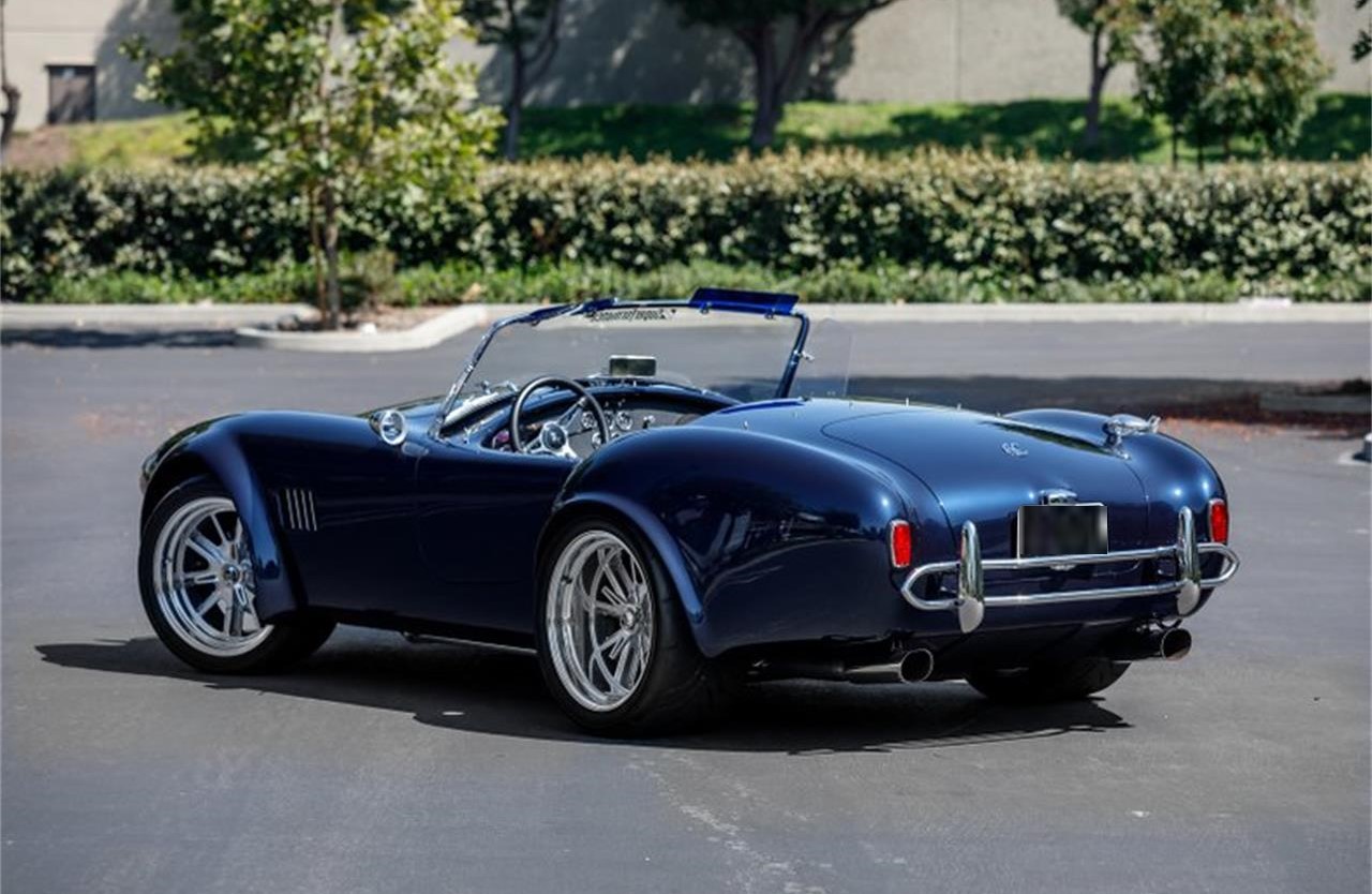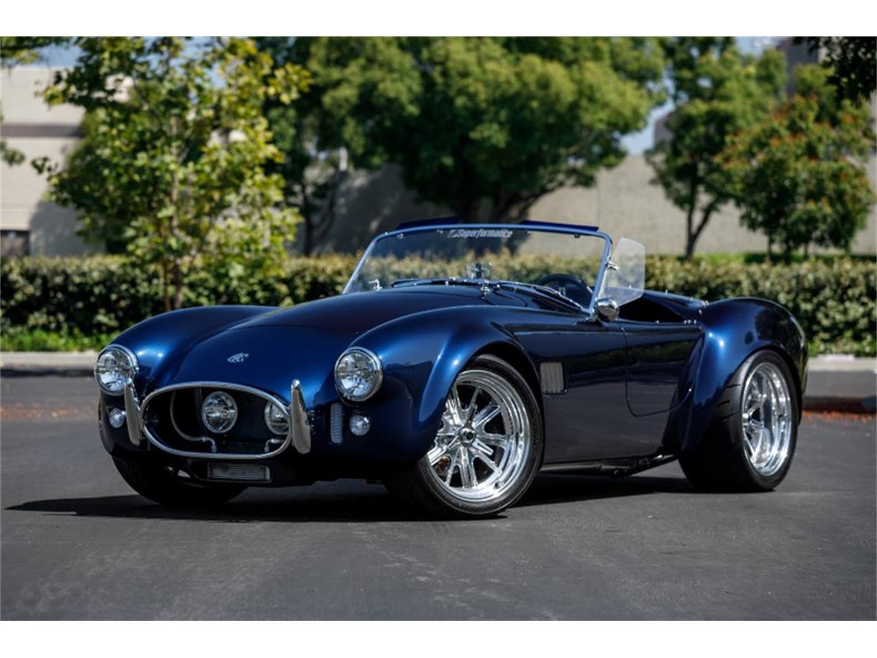 Super formance MKIII 427 Cobra Roadster is painted a deep Shelby Navy Blue. With all chrome trim on headlights, quick jacks, turn signals, and even the nickle-plated brass Windscreen frame. This Cobra has the elegant lines that defines the Cobra Roadster, but offers a modern feel.