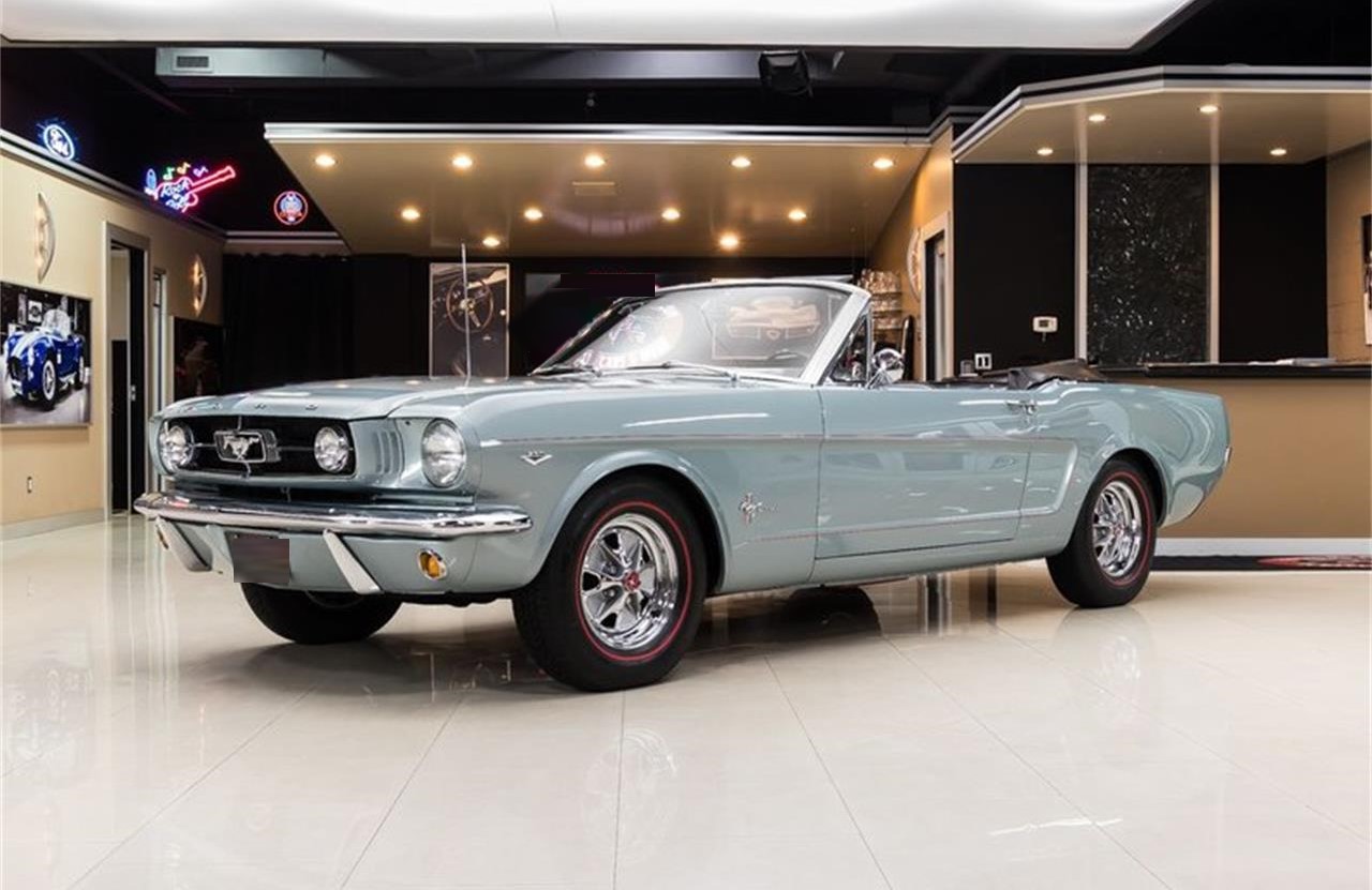 1964 1 2 Ford Mustang Convertible This Mustang has a laser straight body with a glossy Silver Smoke Gray Paint finish, Factory Style Red Pinstripping along the body, Black Manual Convertible Top, beautiful Black Interior, Redline Tires, along with Polished Stainless Steel and Chrome Components all around that s sure to turn heads wherever you go.