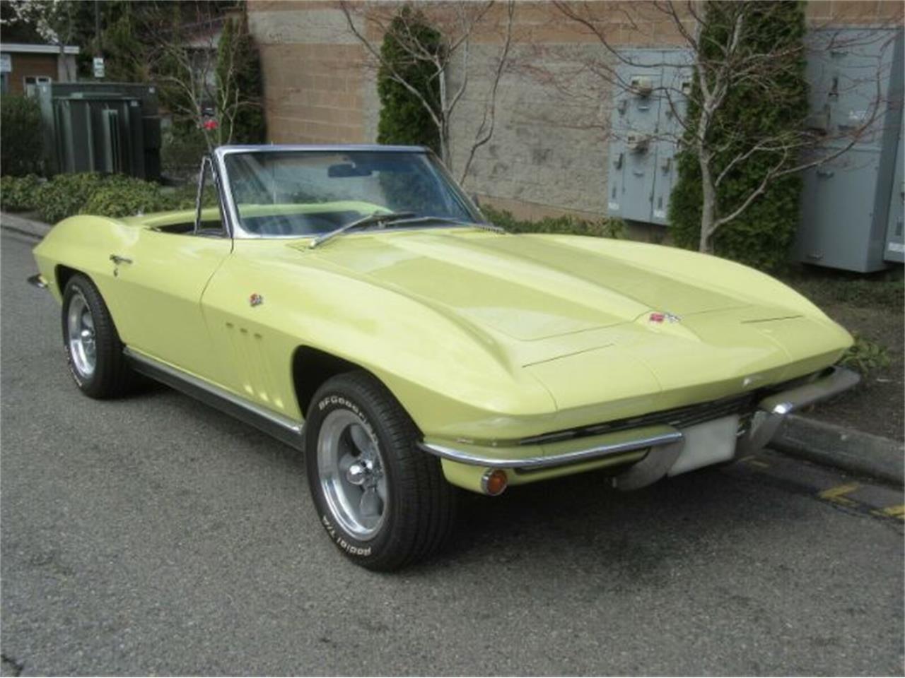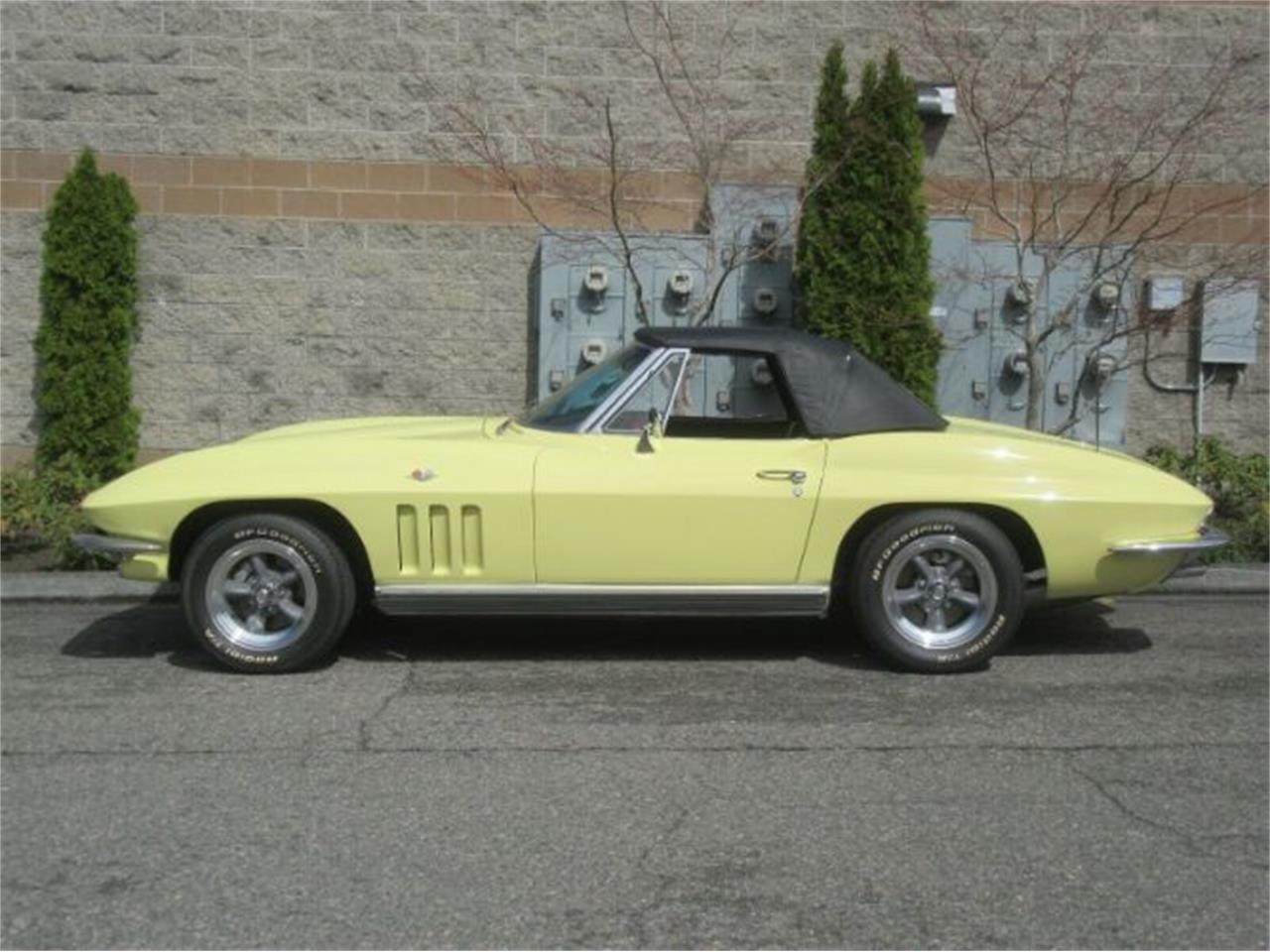 1966 Chevrolet Corvette Roadster Beautiful Sunfire Yellow on mint black interior Matching Numbers 327 c.i. HH 300 h.p. also a K19 air injection reactor 4 speed Muncie 3 36 rear end posi, Hurst shifter, P.S. All new calipers and brakes Rebuilt front end, shocks, brake lines GM hoses, quartz clock, wood steering wheel Custom autosound radio, all gauges, lights, blinkers, wipers, fan heat and defrost Rebuilt steering box, all shrouding for plugs, dist. detailed under the hood Paint is color sanded and rubbed to show quality Doors and all panels fit as they should Matching numbers, clean bumpers, under the car is spotless Never undercoated with natural fiberglass showing.