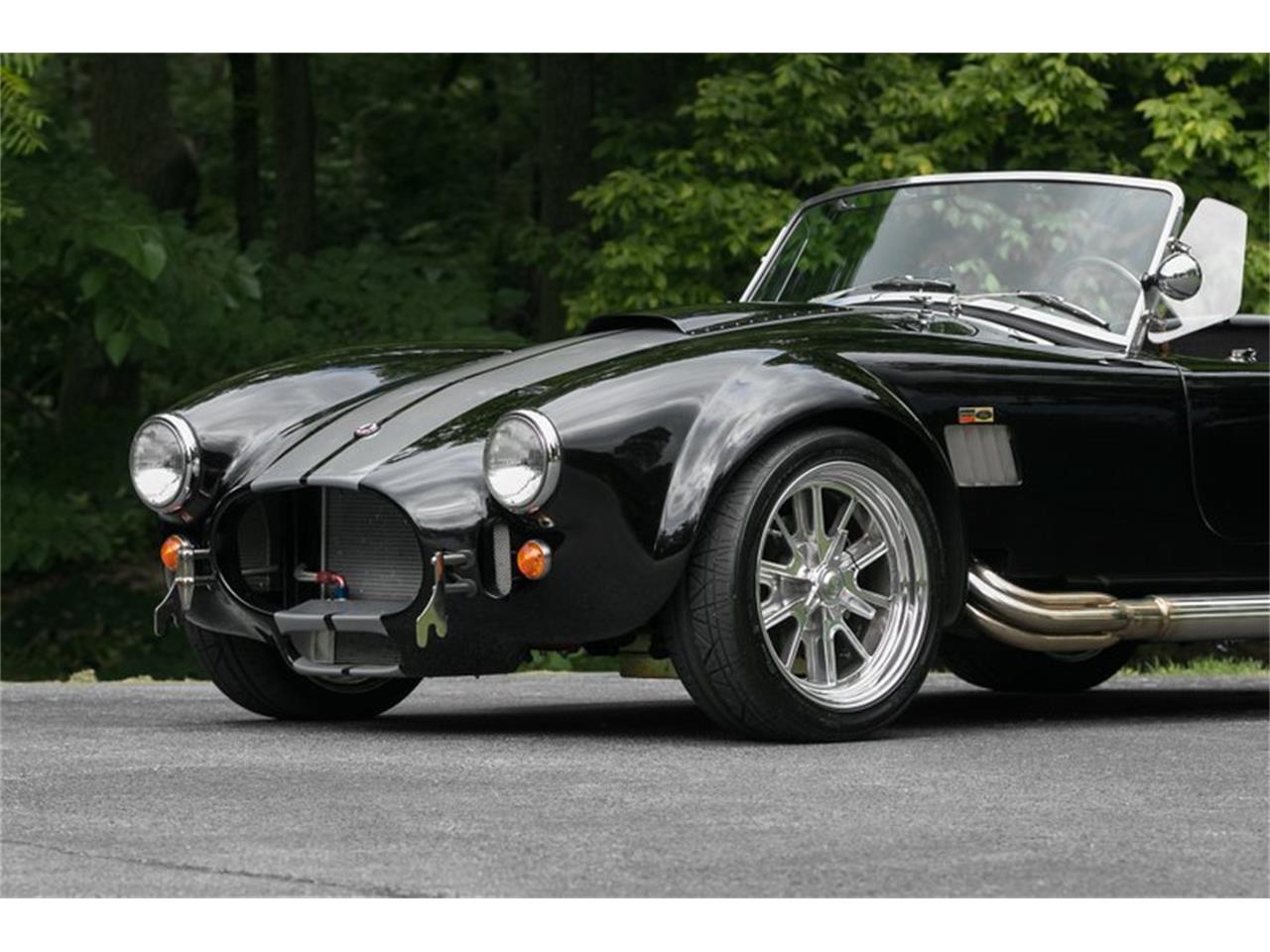 Backdraft Cobra Kit Titled As A 2004 ASV 2 Door, Silver Stripes, Single Chrome Roll Bar, Front and Rear Chrome Quick Jack Bumpers, Stainless Headers Into Stainless Side Pipes, Tinted Visors, Wind Wings, Wood Steering Wheel, Fire Extinguisher, AutoMeter Gauges, 4 Point Racing Belts, 4 Wheel Power Disc Brakes w/ Independent Rear, Front and Rear Sway Bars, Coil Over Shocks, Ford Racing Valve Covers, MSD Ignition and Coil, Polished 18 INCH Knock Off Style Wheels, Aluminum Radiator w/ Dual Electric Fans, Oil Cooler.