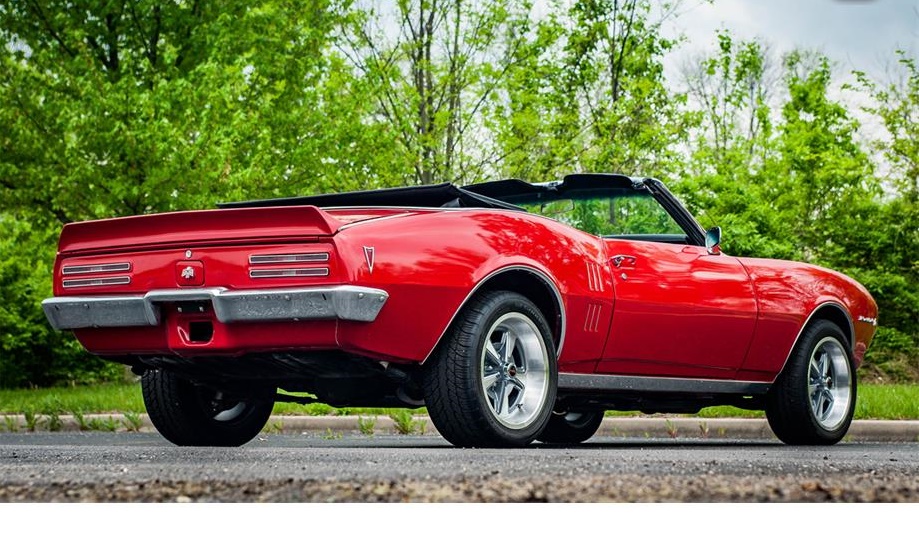 This amazing 1968 Pontiac Firebird Convertible for sale .The interior is black with black vinyl bucket seats and wood grain accents on the center console.The exterior is a gorgeous red and is paired with a black that is in great condition as well.