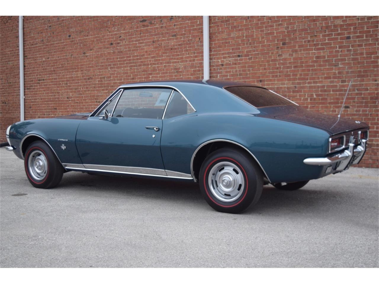 Very RARE color combination Tahoe Turquoise Black 350 ci 295 hp 4 speed trans. Power Brakes Super Sport with white nose stripe Rally wheels Redline bias ply tires Black deluxe interior Wood steering wheel.
