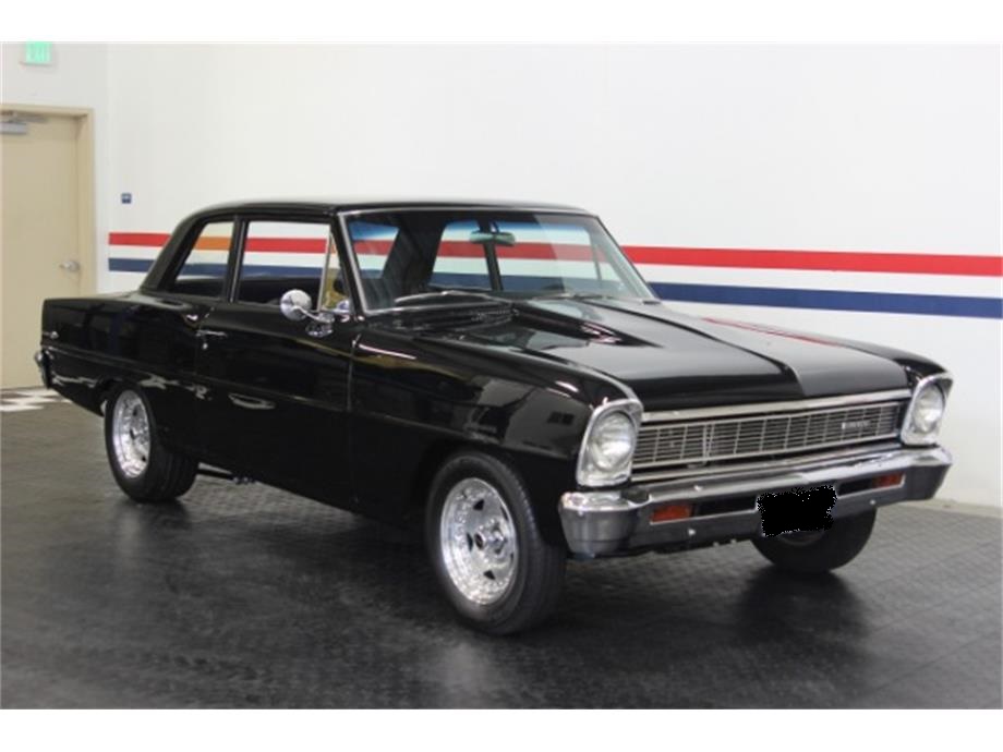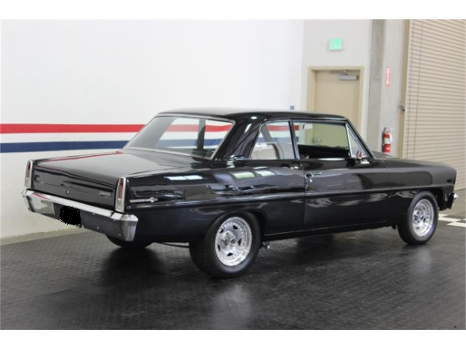 Black on Black 1966 Chevrolet Nova Setup with a 327, 4 Speed, and Air Conditioning Makes it a Comfortable and Fun Driver.