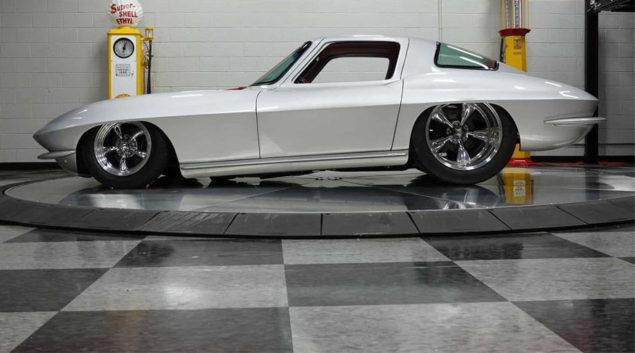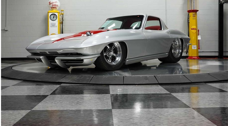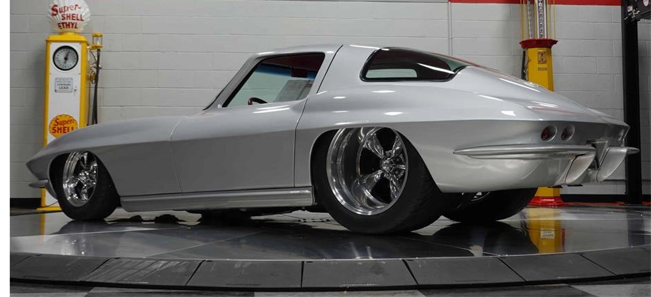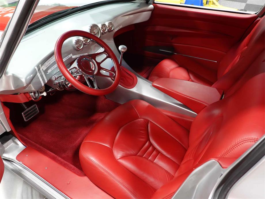 The paint is silver with a red stinger hood accent. Full wheel tubs accomodate 20 American Racing wheels and giant Mickey Thompson tires.Spectacular condition.