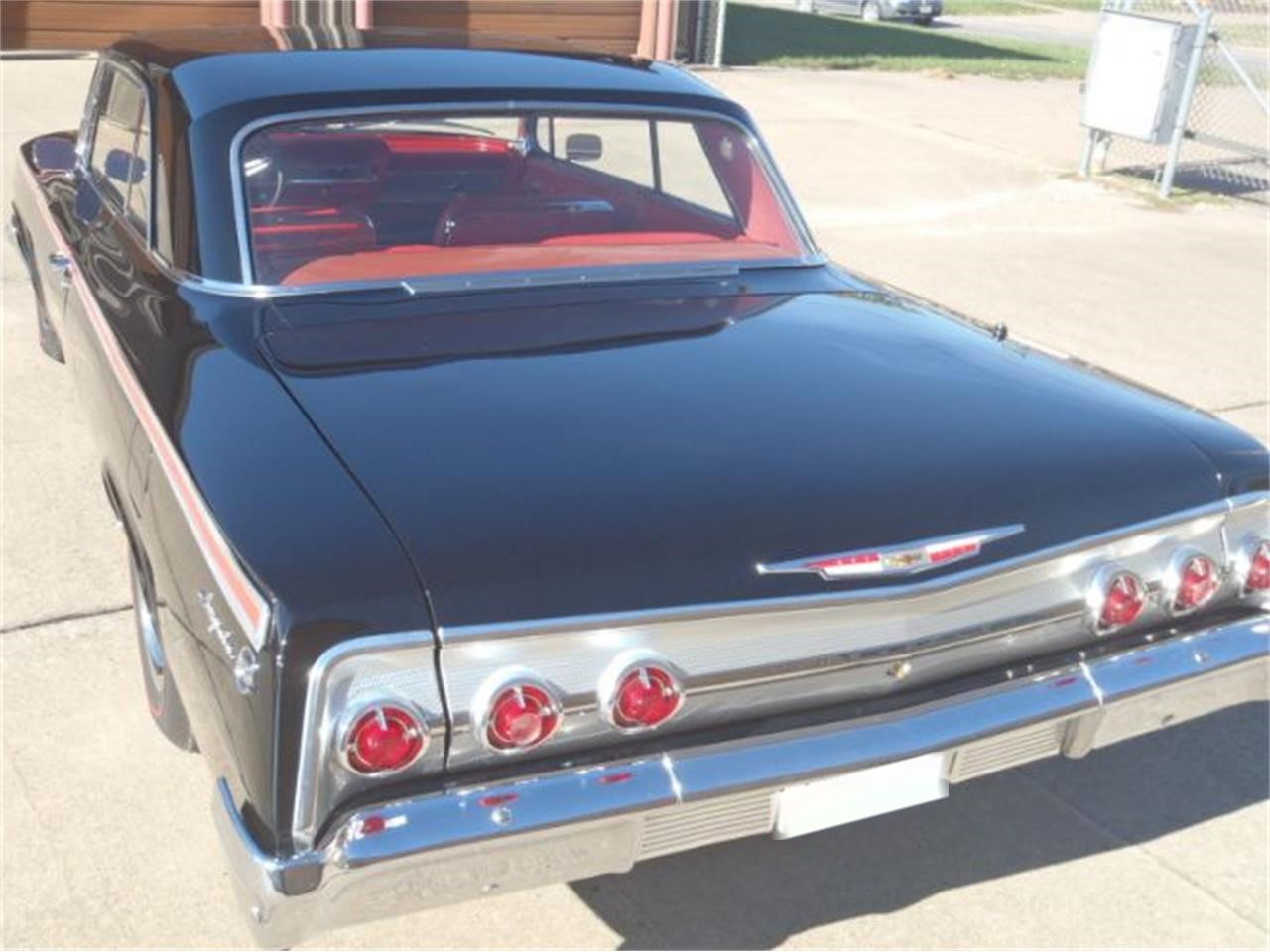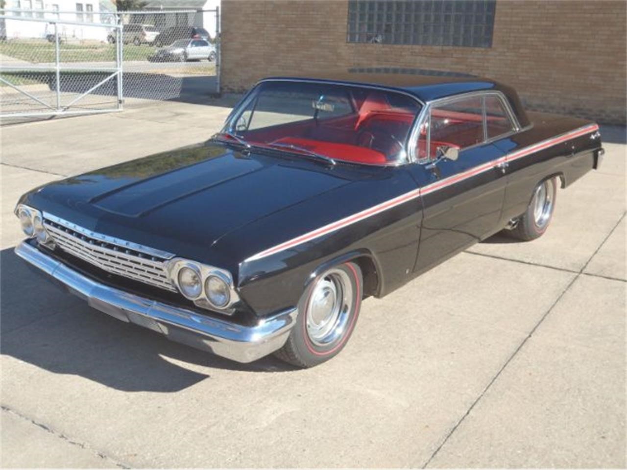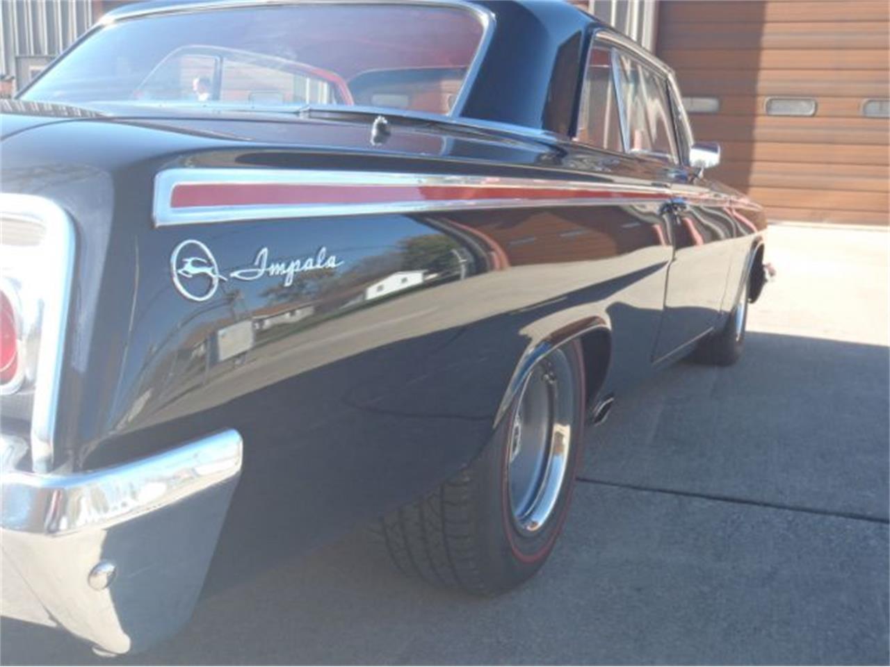 1962 CHEVROLET IMPALA SPORT COUPE Factory black car that received a complete frame off restoration.Beautiful straight jet black. All new red interior. Rack and pinion power steering, power brakes. Built Chevy big block with Dual quad Edelbrock carb. 5 speed manual transmission.Custom exhaust with side exit. 15 x 8 Chevy Rallys with Redline radials. Tilt steering wheel, Custom AC.