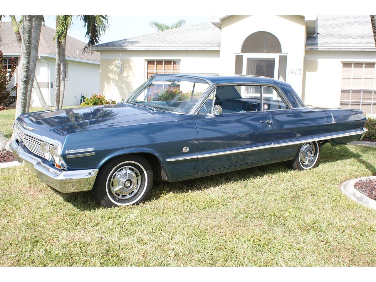 Bench seat, 4 speed, 409 425 HP solid lifter motor, No power steering/ no power brakes, Very nice car inside and out.