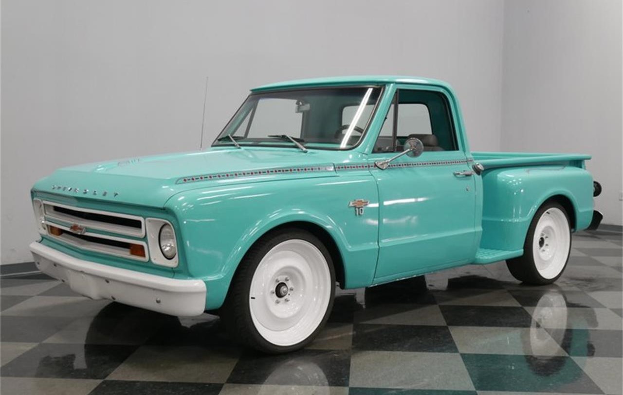 Painted in a patina style teal finish with plenty of white accents and custom pinstriping, there s just no way to escape notice when you re driving this rig. The bed floor is stained hardwood and teal painted strips, with matching teal paint on the side walls and tailgate, so it s still pretty darned useful as a truck. Painted white bumpers fore and aft look great, with the front end taking on a slightly custom look with the matching white grille and headlight bezels.