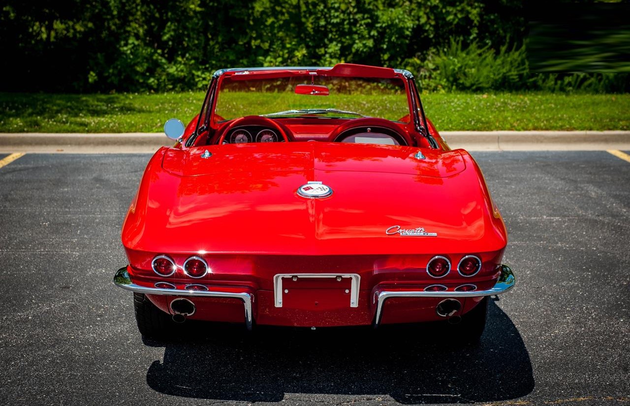 This car has been disassembled and restored with every nut and bolt on this car getting attention. This Corvette is show quality and looks better than it did coming off the assembly line. It has been painted Riverside Red that is gorgeous and will take your breath away when you look into the detail of the paint job. The interior has been redone using Al Knoch for the top, seat covers, door panels, dash pad, and carpet. All the stainless has been polished to show quality and the chrome has been rechromed to guarantee it is top notch finished.