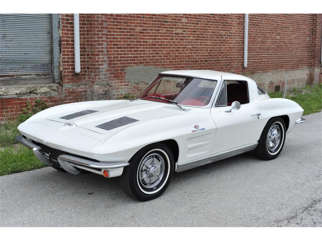 1963 Chevrolet Corvette Split Window Coupe Ermine White and red.All the ignition shielding and details you would expect to be in place, are there. Paint and chrome trim in very good condition.