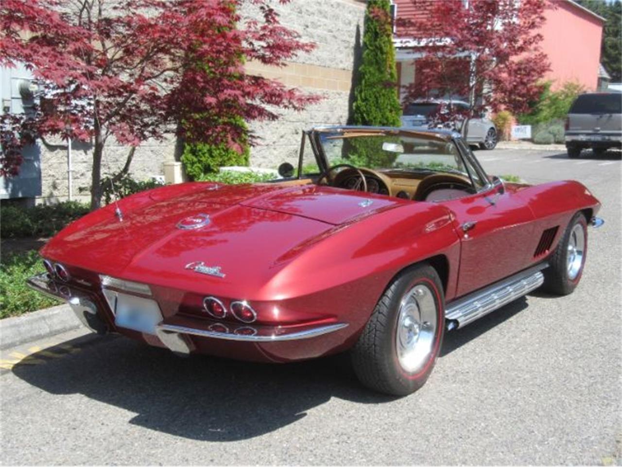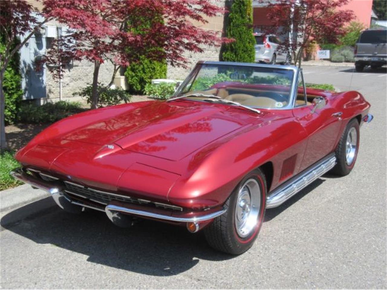 1967 Chevrolet Corvette Roadster Beautiful Marlboro maroon with tan leather, matching NEW soft top, restored top bows 327 built to L 79 350 h.p. lots of power Muncie 4 speed, side mounted exhaust system P.S., P.D.B., upgraded AM FM cassette built for C2 dash Original DC 15 6 Ralleys, Redlines Hottest year for C2 Corvette, quartz clock Super daily driver, fast fun affordable.