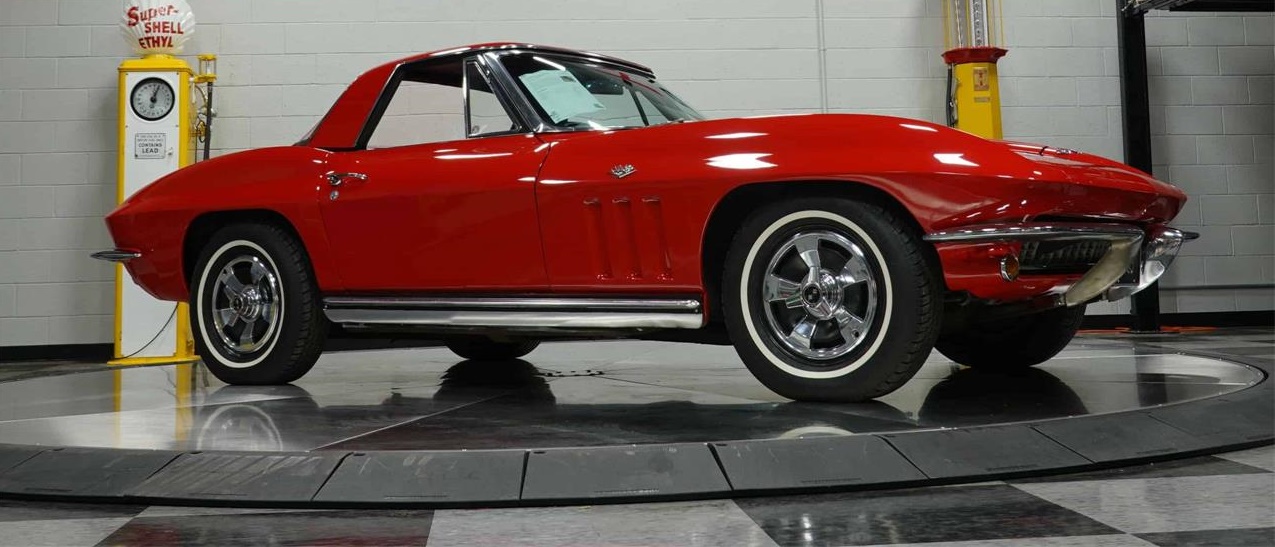 This 1965 Corvette Convertible is a preferred package for many. '65 was the first year for four wheel disc brakes on a Vette.This one being red with a black interior adds even more to the perfect blend. The engine is its original.