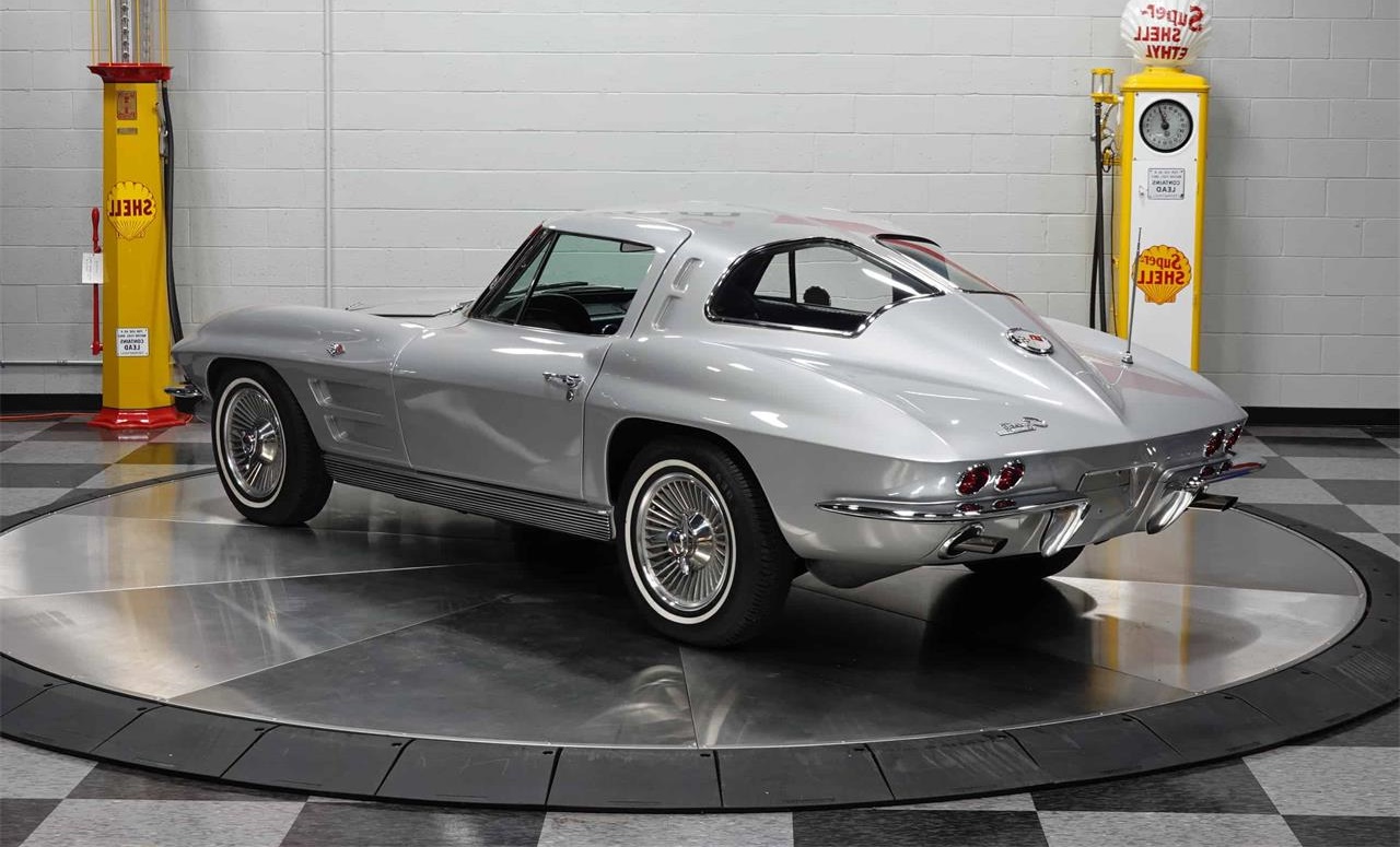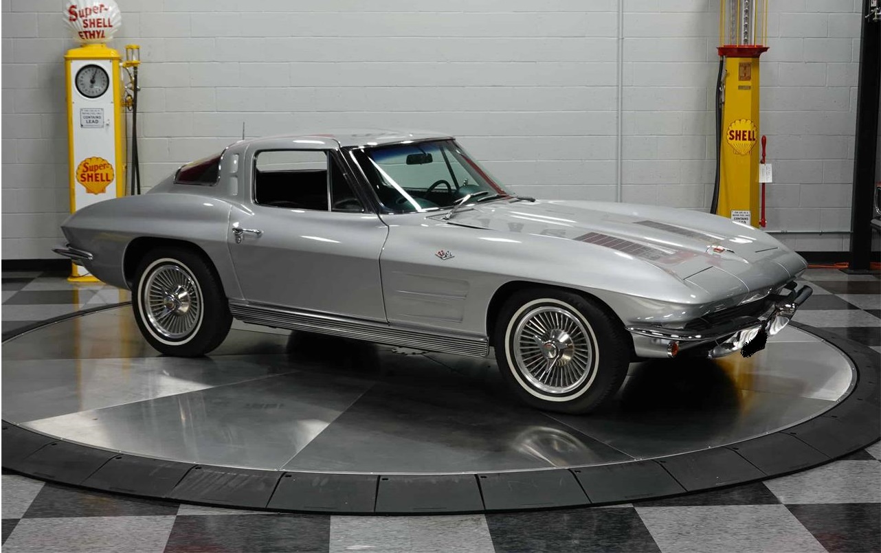 Here s a true classic car icon, a 1963 Corvette Split Window Coupe.And what a fine example it is. A 327 4 speed car, it is a very desirable combination. This drivetrain provides balance, and a great combination of performance and handling. Silver paint and a dark blue interior lend an extra measure of timeless elegance to this Corvette.