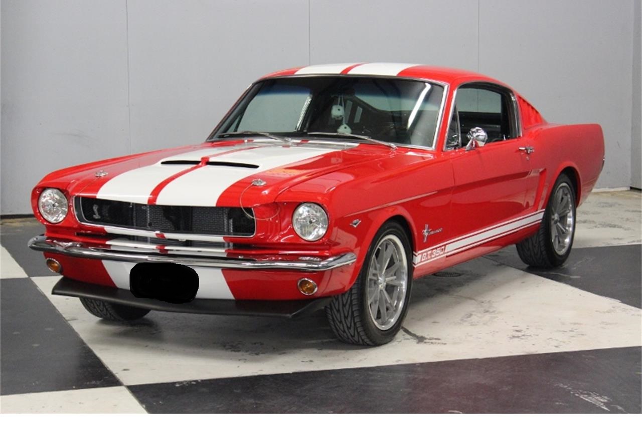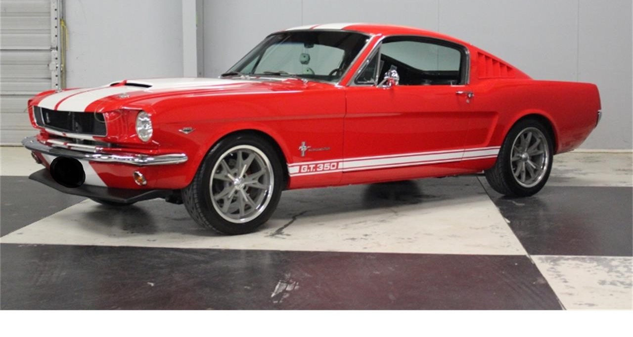 1966 Ford Mustang Fastback.Painted a beautiful Red with White stripes, slick and straight with new door handles.