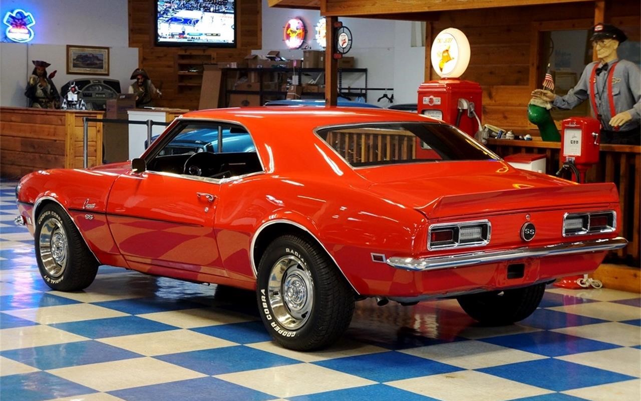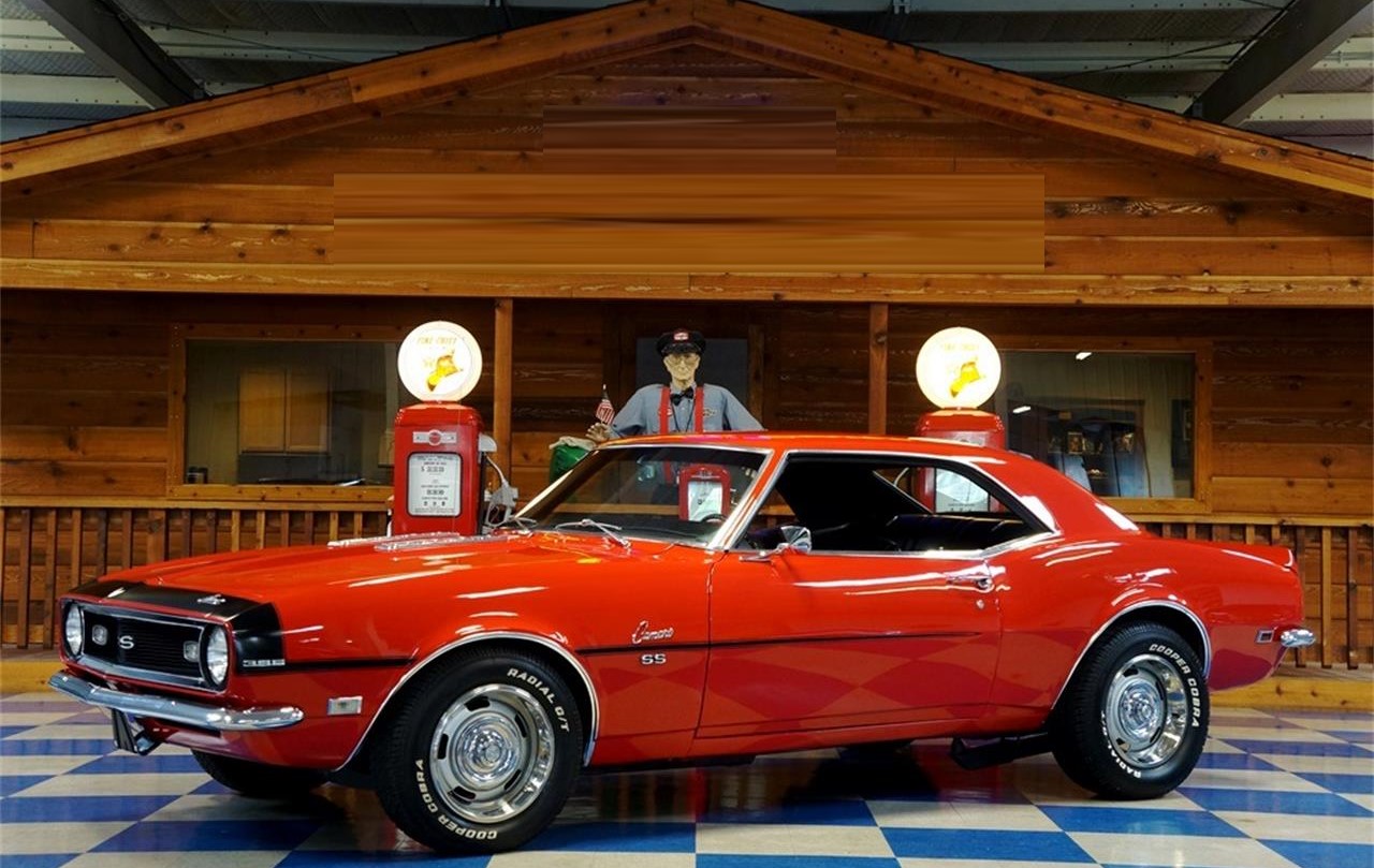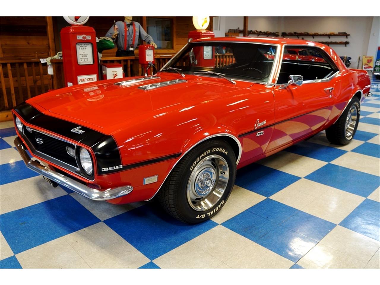 700R4 Automatic Overdrive transmission. 12 bolt rear end. Painted Red with Black SS stripe. Black vinyl bucket seat interior with Deluxe door panels and center console. Power front disc brakes. Power steering. Magna flow dual exhaust with headers. Front sway bar. Electric fan. Pro RacingTach column tachometer. Auto meter under dash Oil Temperature gauge cluster. Wood grain console dash accents.
