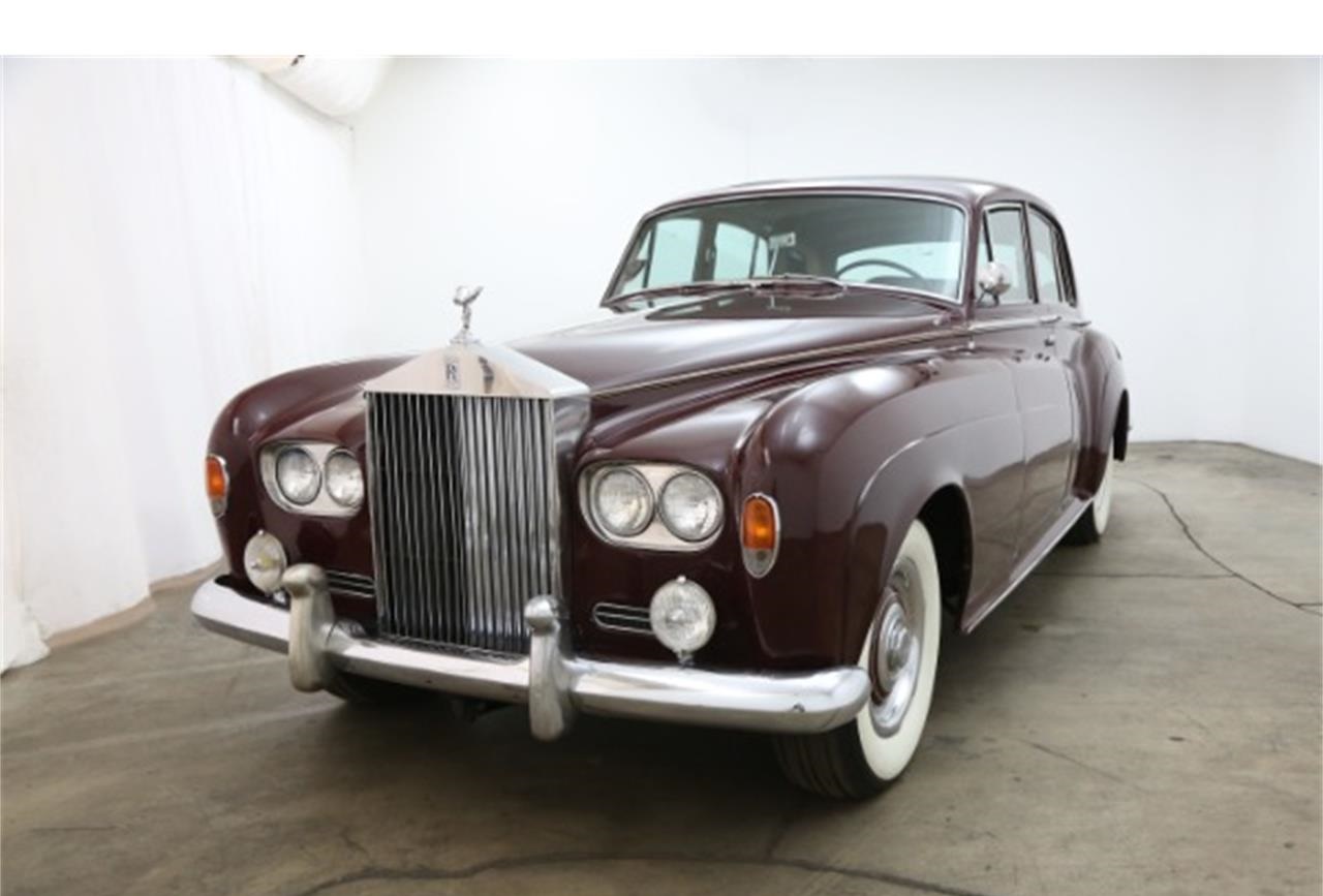This elegant left-hand drive 1963 Rolls-Royce Silver Cloud III is available in burgundy with a creme interior. It comes equipped with an automatic transmission, air conditioning, power windows, power steering, wood trim, rear picnic trays and solid wheels with white wall tires.