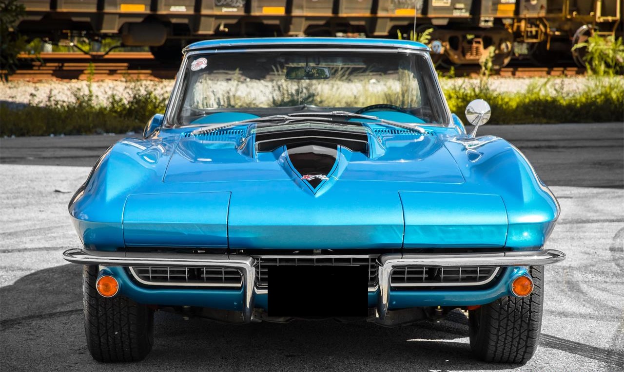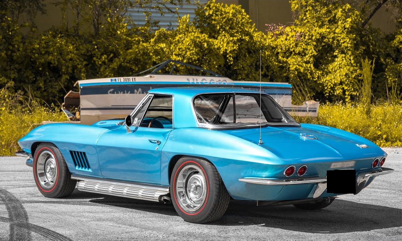 390 hp 427ci V8, mated to a 4 speed transmission. The interior is flawless, with zero imperfections that we can see. The seats, door cards and dash show no wear. The headliner is in excellent condition. The Marina Blue paint is flawless. This is easily a 10. You will not find a nicer 390 hp Marina blue vert on the market today. The rally wheels and redlines are in excellent condition. The chrome is show quality, the factory glass shows excellent. Please grab some popcorn and watch our video, you will surely fall in love with this car. The side pipes give this car an aggressive look, ensuring everyone on the block knows you are coming.