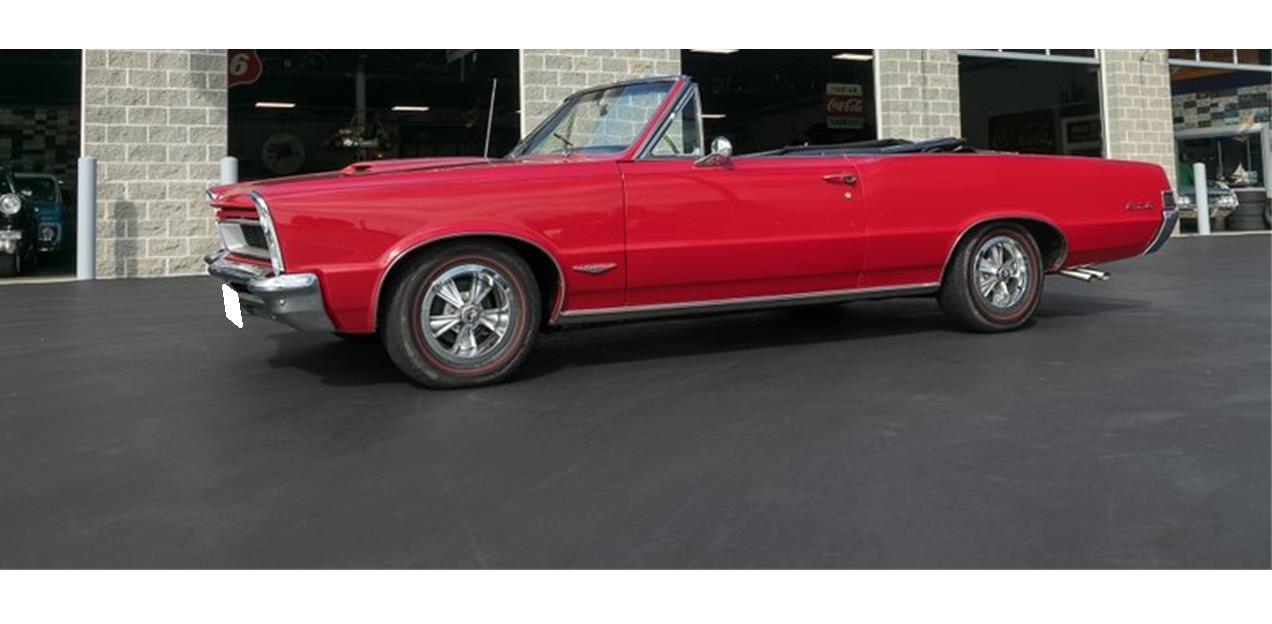 This 1965 Pontiac GTO Convertible for sale has a 389c.i. Tri Power V8 , 4 Speed Manual Transmission, 3.90 1 Rear End Ratio Safe T Track Limited Slip, Factory GTO, Correct Montereo Red Exterior, Correct Black Power Soft Top, Correct Black Bucket Seat Interior Center Console, Power Steering, Power Disc Brakes, Push Button AM Radio, 2 Speed Wipers.