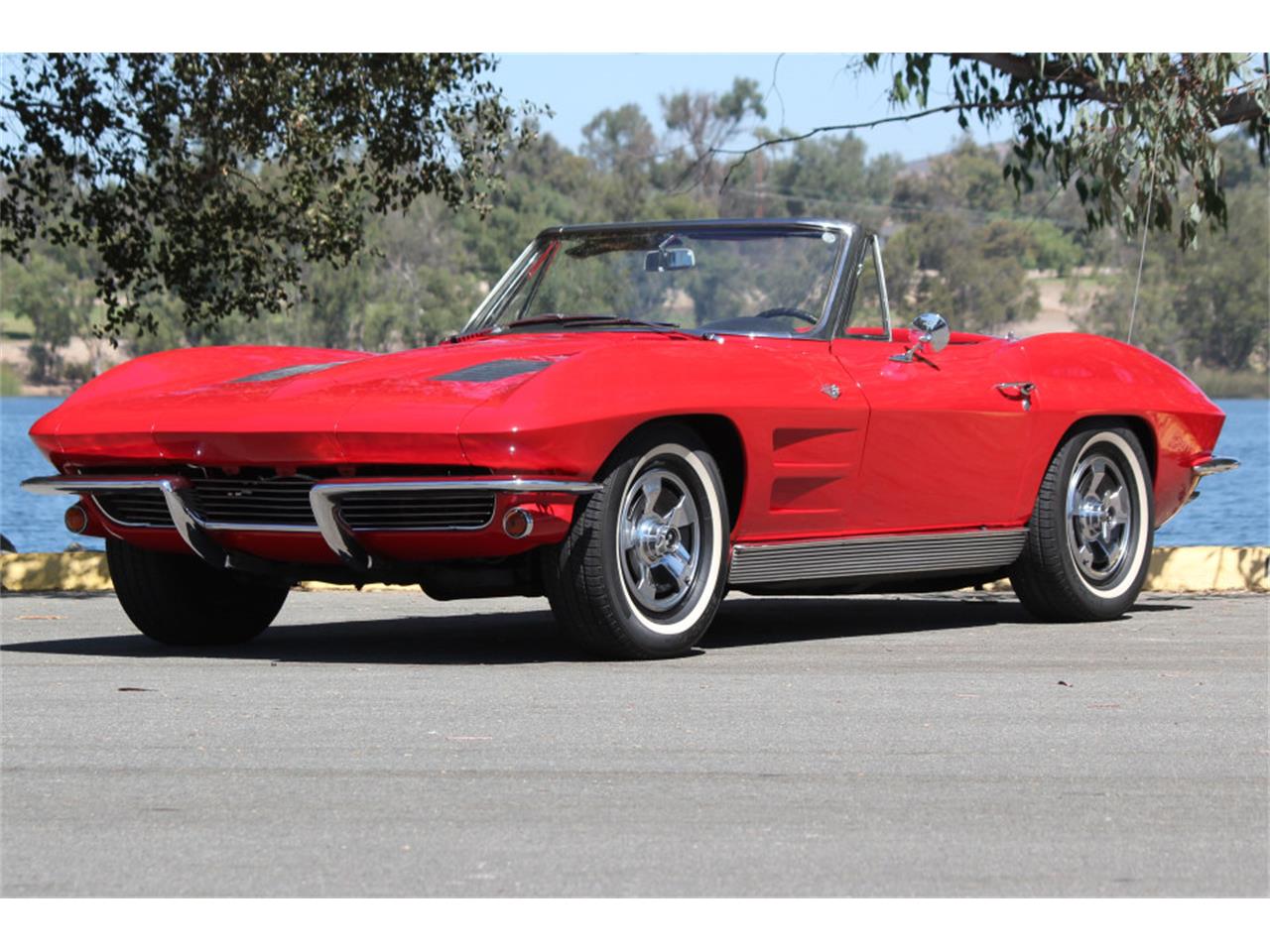 1963 Chevy Corvette Sting Ray Convertible. Beautiful sporty red exterior on black leather with a 4 speed manual transmission and 327 Cubic Inch V8 Engine. A Hard top is included which overall looks good.