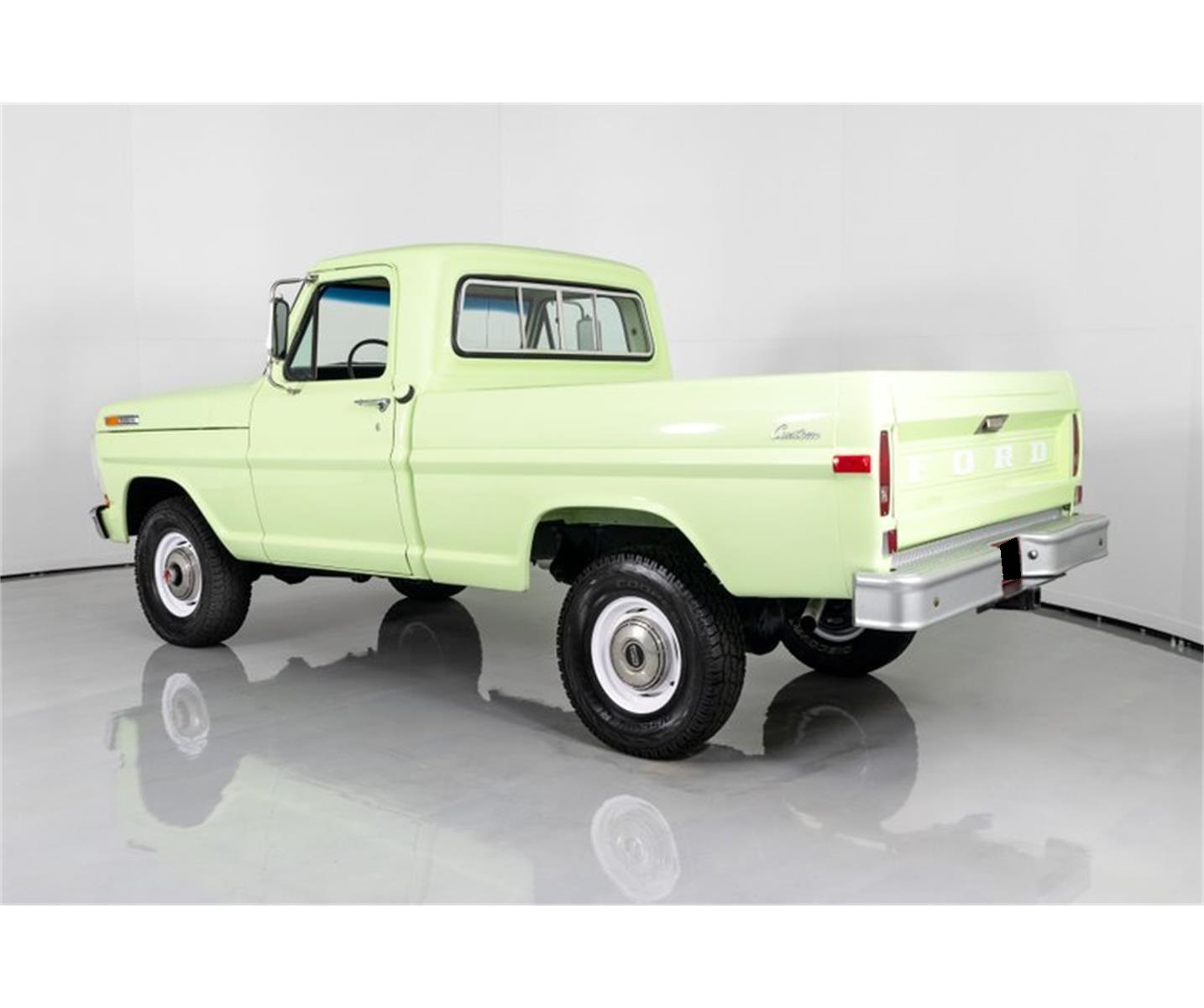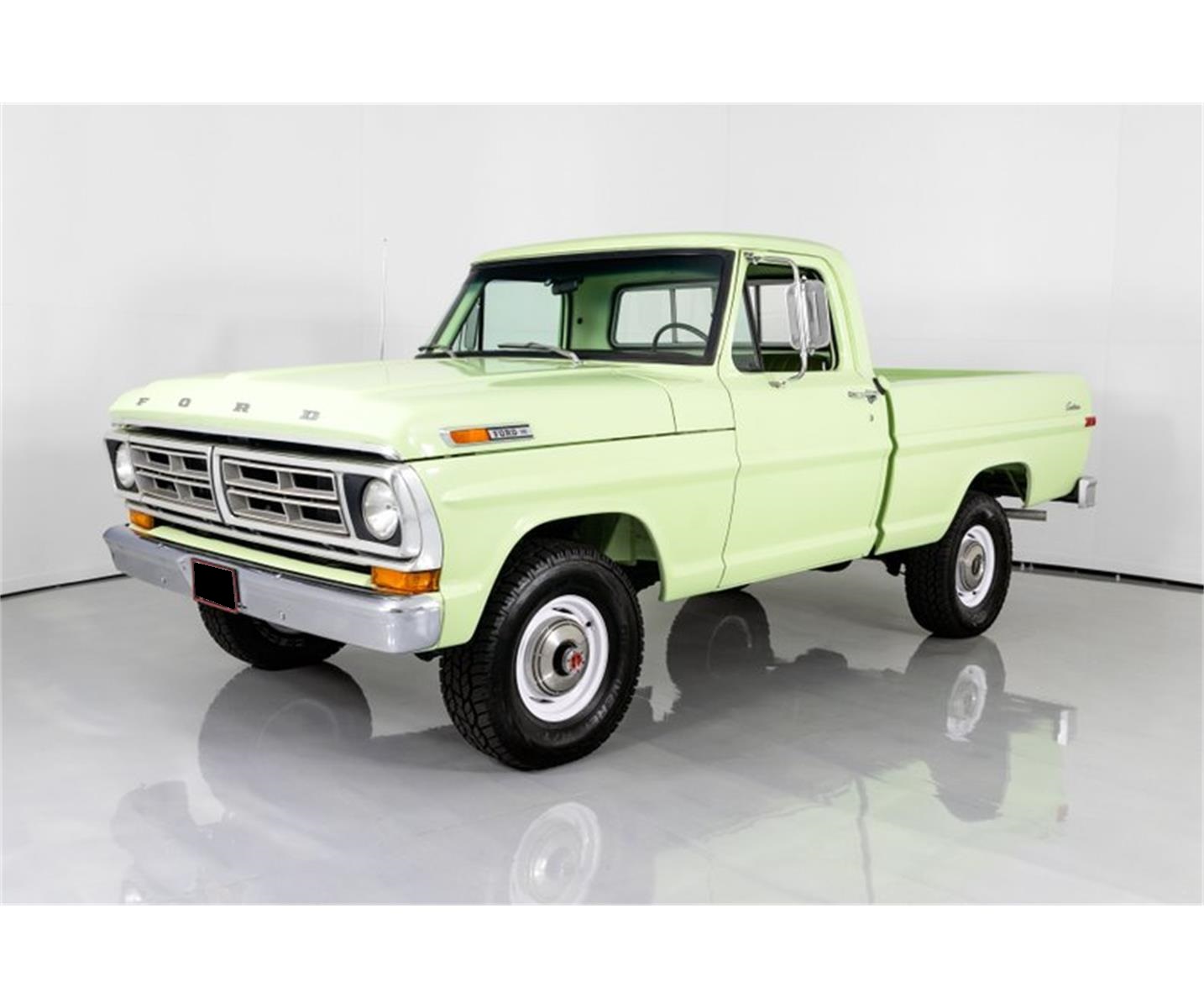 This 1972 Ford F100 Pickup for sale has a 390c.i. Ford V8 (1968 Date Coded) w/ 4bbl Carb, 4 Speed Manual Transmission, Ford 9" Rear w/ 3.50:1 Ratio, 43,532 ORIGINAL Miles! Winter Green Exterior, Correct Green Bench Seat Interior.