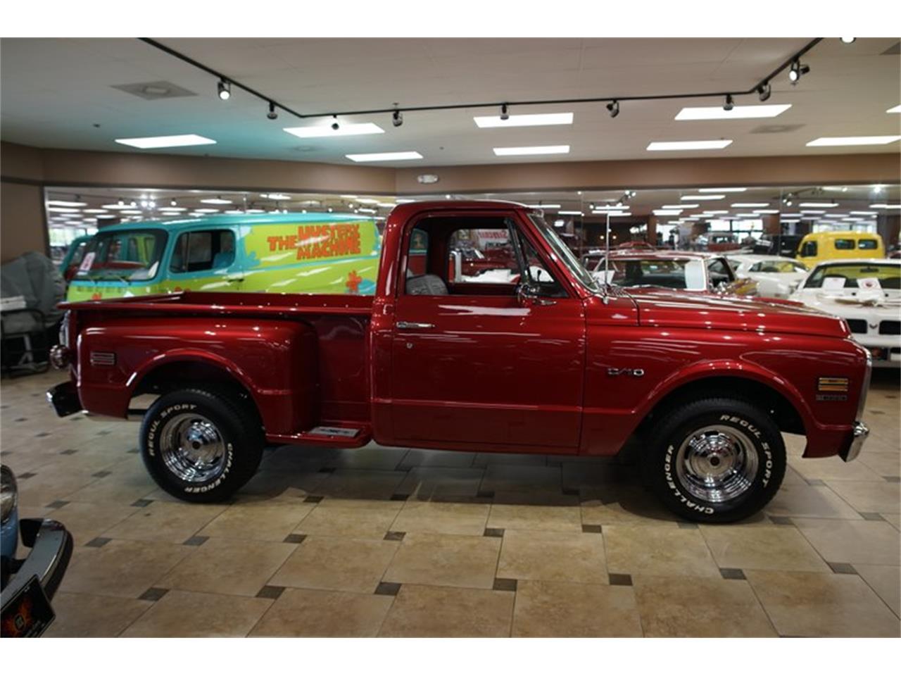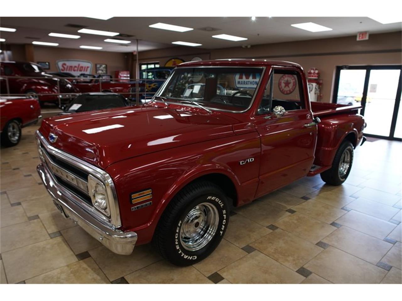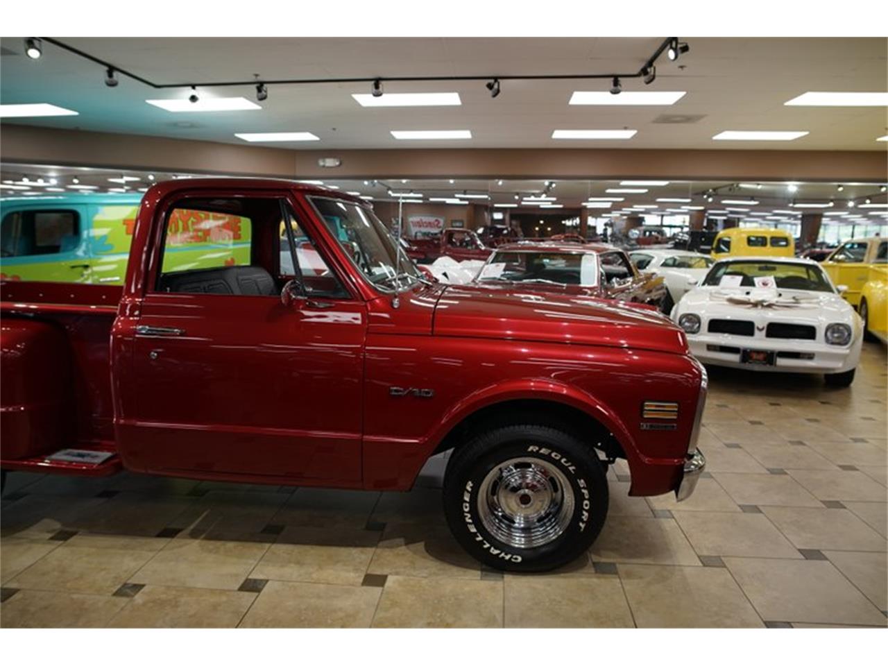 This 1970 Chevy C10 is one of the most stunning pickups you'll ever see on the road. Under the hood lies the powerful 396C.I. V8 engine mated to a strong Turbo Hydramatic 350 automatic transmission. This truck can lay down some serious rubber and will look good doing it, with it is deep red metallic paint accented by the glittering chrome trim and Chevy Rally wheels. Power steering and brakes help keep you planted safely on the road and in control. Hop inside and sit back on the clean black vinyl bench seat and get ready for a fun ride.