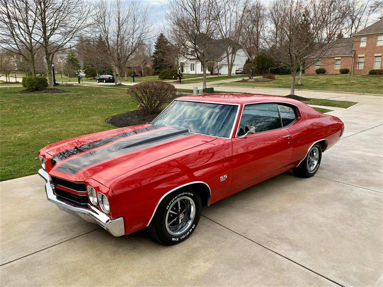 1970 CHEVY CHEVELLE SS. TRUE DOCUMENTED "ZL3" SUPER SPORT WITH THE FACTORY BUILD SHEET! A GORGEOUS CORRECT CODE "75" CRANBERRY RED SUPER SPORT - ONE OF THE MOST POPULAR AND SOUGHT AFTER 1970 CHEVELLE SS COLORS! CORRECT "756" CODE BLACK BUCKET SEAT INTERIOR. F41 SUSPENSION! POWER DISC BRAKES. POWER STEERING. 7,000 RPM TACH. 396CI CHEVY BIG BLOCK #3969854. H400 AUTOMATIC TRANSMISSION. 12 BOLT REAR WITH 3:73 GEARS ("CCW1225B1" STAMP ON HOUSING). (ORIGINALLY A 3:31 GEAR FROM THE FACTORY). BOXED REAR TRAILING ARMS WITH F41 SUSPENSION REAR SWAY BAR. NICELY DETAILED UNDERCARRIAGE. BEAUTIFULLY DETAILED, CLEAN, AND SOLID TRUNK COMPARTMENT WITH MAT, SPARE, JACK, AND LUG WRENCH.