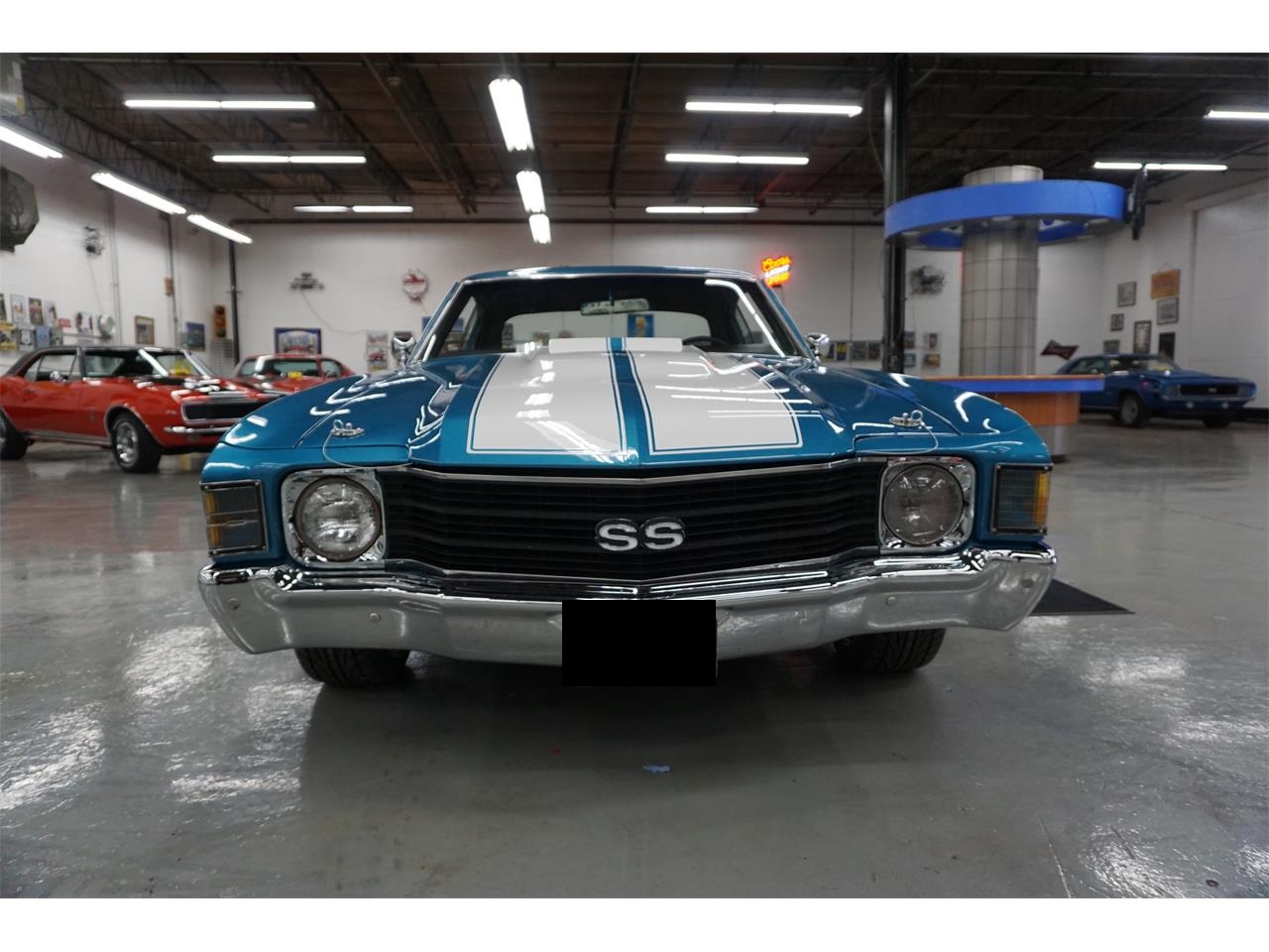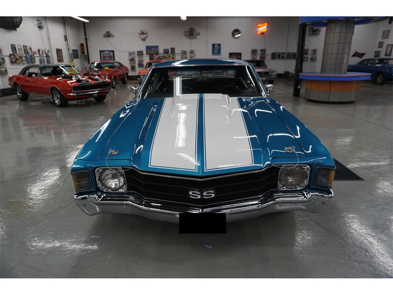This Chevelle was restored a 2 years ago but still shows great and was refinished in slick Lemans blue paint. The paint is super slick and glossy. The chrome trim and bright work are in great condition. This Chevelle has a amazing stance thanks to a fresh set of chrome wheels with a stagger appearance 20in rear and 18in front. The full custom black interior package is in great condition. The engine bay is highly detailed with a generous amount of chrome to make it pop. This Chevelle is powered by a 396C.i engine with headers backed by a TH400 trans.