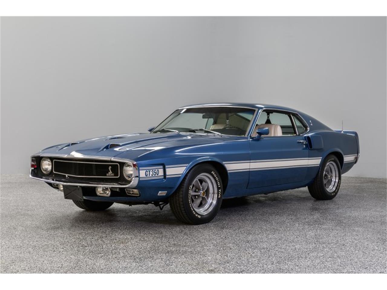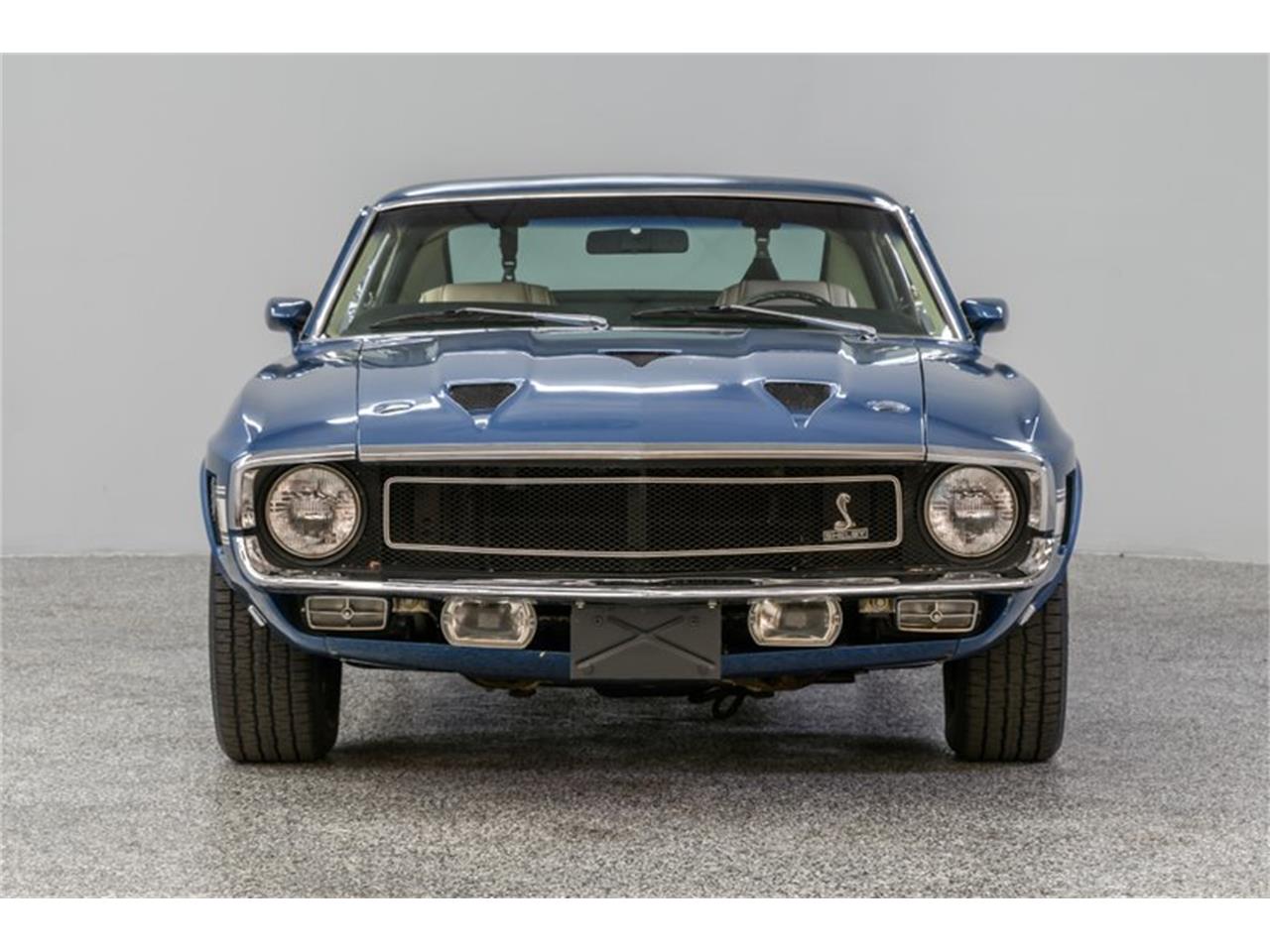 The 1969 Mustang Shelby GT350 was the production year of production for the 1st generation Shelby GTs. This 1969 GT350 is an unrestored, original fastback that is very complete. The factory Acapulco Blue finish is somewhat weathered and presents a patina look in some areas. However, the chrome and stainless pieces are all good. Factory correct 5 spoke Shelby wheels mount BFGoodrich T A radial tires. The original interior is in good condition.